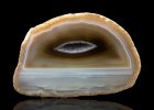 Achate findet man in der Regel in Vulkangestein, wo sie Hohlräume füllen, die durch austretende Gase entstanden sind, oder als Adermaterial in Spalten. Die Bänderung von Achat kann in Weiß-, Grau- bis Schwarztönen auftreten, und helle und pastellfarbene Töne sind im gesamten Spektrum verbreitet. Zu den weiteren charakteristischen Merkmalen gehören eine muschelförmige Brechung, ein glasartiger bis öliger Glanz und eine Härte, die bis zu einem Mohs-Härtegrad von 7 variiert.