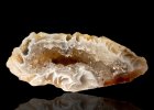 Achat gehört zu den Quarzit-Materialien und besteht aus einer Mischung aus kristallinem und feinfaserigem Quarz – Chalcedon und Opal. Er zeichnet sich durch konzentrische, wellige oder horizontale Streifen aus. Je nach Art des Musters haben bestimmte Achattypen besondere Namen erhalten. Sie sind zum Beispiel Blitz, Ocker, Ruine, Stern, Koralle, Moos oder Haus. In manchen Fällen enthalten Achate auch andere Mineralien wie Calcit, Dolomit, Goethit, Limonit, Baryt, Chlorit, Manganoxide, Chrysokoll oder Drähte aus reinem Kupfer. Kristalle von Quarzarten, seltener Calcit, können oft im Inneren ungefüllter Geoden gefunden werden.