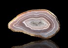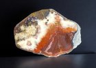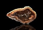 Agate belongs to quartzite materials and consists of a mixture of crystalline and fibrous quartz, chalcedony and opal. In the Czech Republic, you can find classic agates with concentric, wavy, eye-shaped or, more rarely, horizontal stripes. Agate pseudomorphs after barite are also common, the rarest of which is the ‘lightning agate’ from Rot Halze. Tiny agates can also be found in jasper, silicified wood and ferruginous quartz.