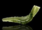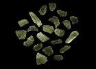 Moldavite is coloured in various shades of green (rarely with a blue tinge) to brown. Individual pieces may be matt, glossy, glassy glossy to lacquered appearance. The shapes are varied. The disc (half disc), sphere, dumbbell, drop, oval or bar are considered to be so-called wholeshapes, that have retained their appearance since the time of impact. Less rare are so-called shards, where the original appearance cannot be determined. Moldavites contain bubbles ranging in size from tenths of a millimetre to centimetres. Characteristic are lechatelierites (amorphous SiO2).