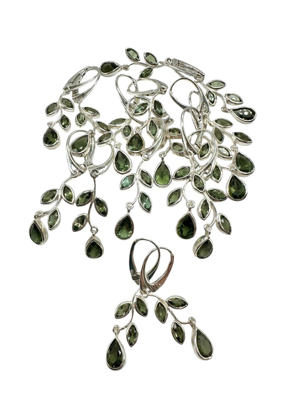 8 ks stříbrných náušnic s broušenými vltavíny