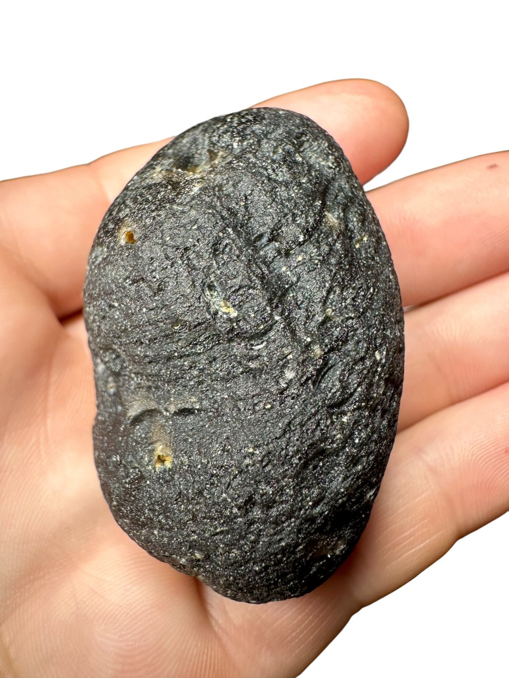 Tento kámen má tmavou, téměř neprůhlednou barvu, která se pohybuje od šedé po černou. Povrch může být skelný a texturovaný, někdy s drobnými bublinkami, což je typické pro tektity.