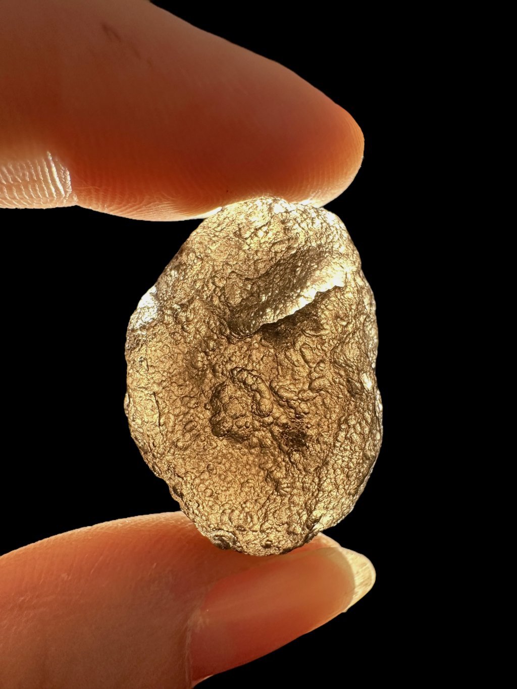 Tento kámen má tmavou, téměř neprůhlednou barvu, která se pohybuje od šedé po černou. Povrch může být skelný a texturovaný, někdy s drobnými bublinkami, což je typické pro tektity.