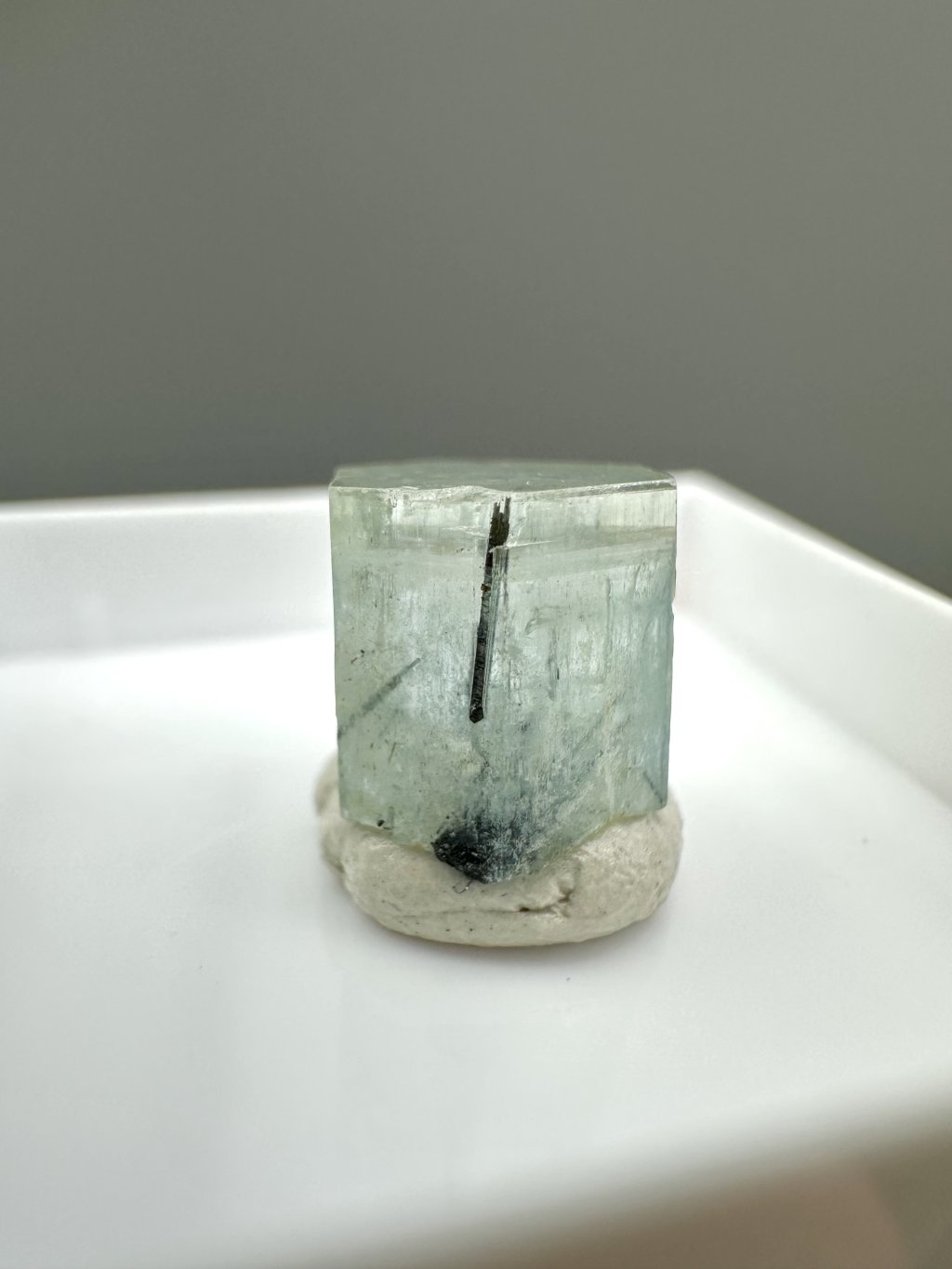 Muskovit: Krystaly muskovitu, které mají stříbřitý vzhled, jsou dalším minerálem, který tvoří kompozice s akvamarínem. Muskovitové lupeny vytvářejí krásný kontrast s modrou barvou krystalů.