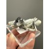 Muskovit: Krystaly muskovitu, které mají stříbřitý vzhled, jsou dalším minerálem, který tvoří kompozice s akvamarínem. Muskovitové lupeny vytvářejí krásný kontrast s modrou barvou krystalů.