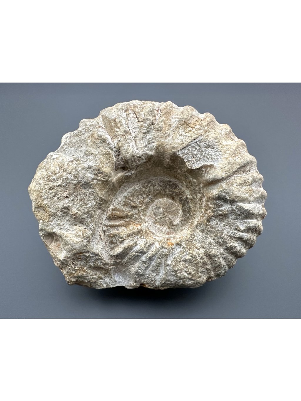 - Spirálovitá schránka: Amoniti měli charakteristické stočené vápenité schránky, které byly rozdělené přepážkami do komůrek. Živé zvíře obývalo poslední, nejnovější, komoru, zatímco dříve vytvořené komory se plnili plynem nebo kapalinou, což jim pomáhalo s nadnášením.