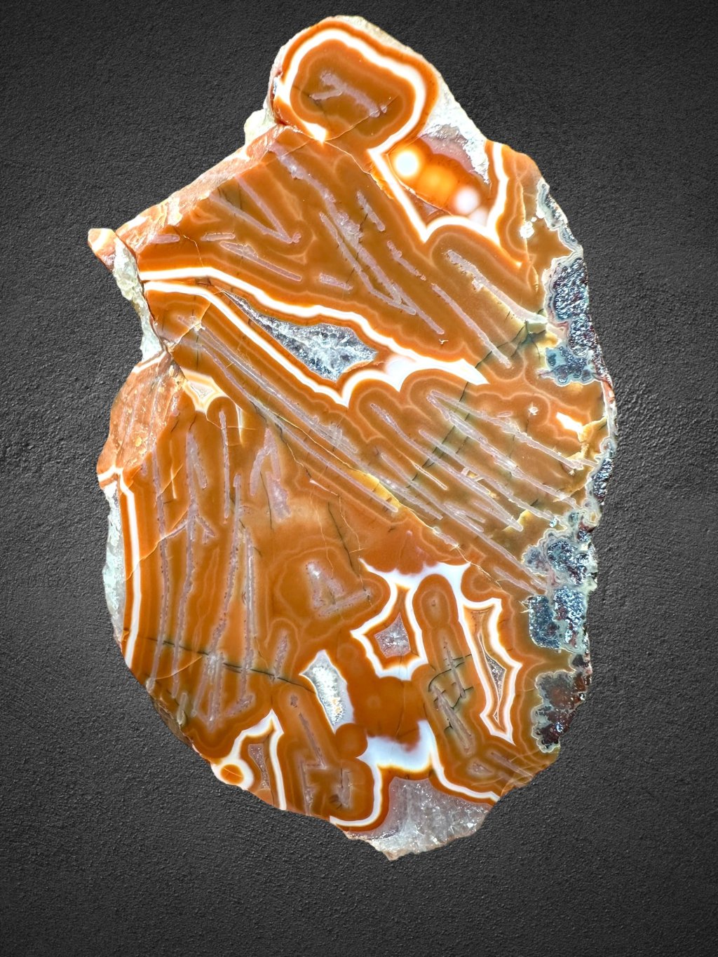 Bleskový achát z Horní Halže je vzácný a unikátní druh achátu, který se vyskytuje pouze v této konkrétní lokalitě v České republice. Tento achát je známý svou krásnou oranžovo - červenou barvou s modro - šedými bleskovými vzory, které mu dodávají jeho charakteristický vzhled.