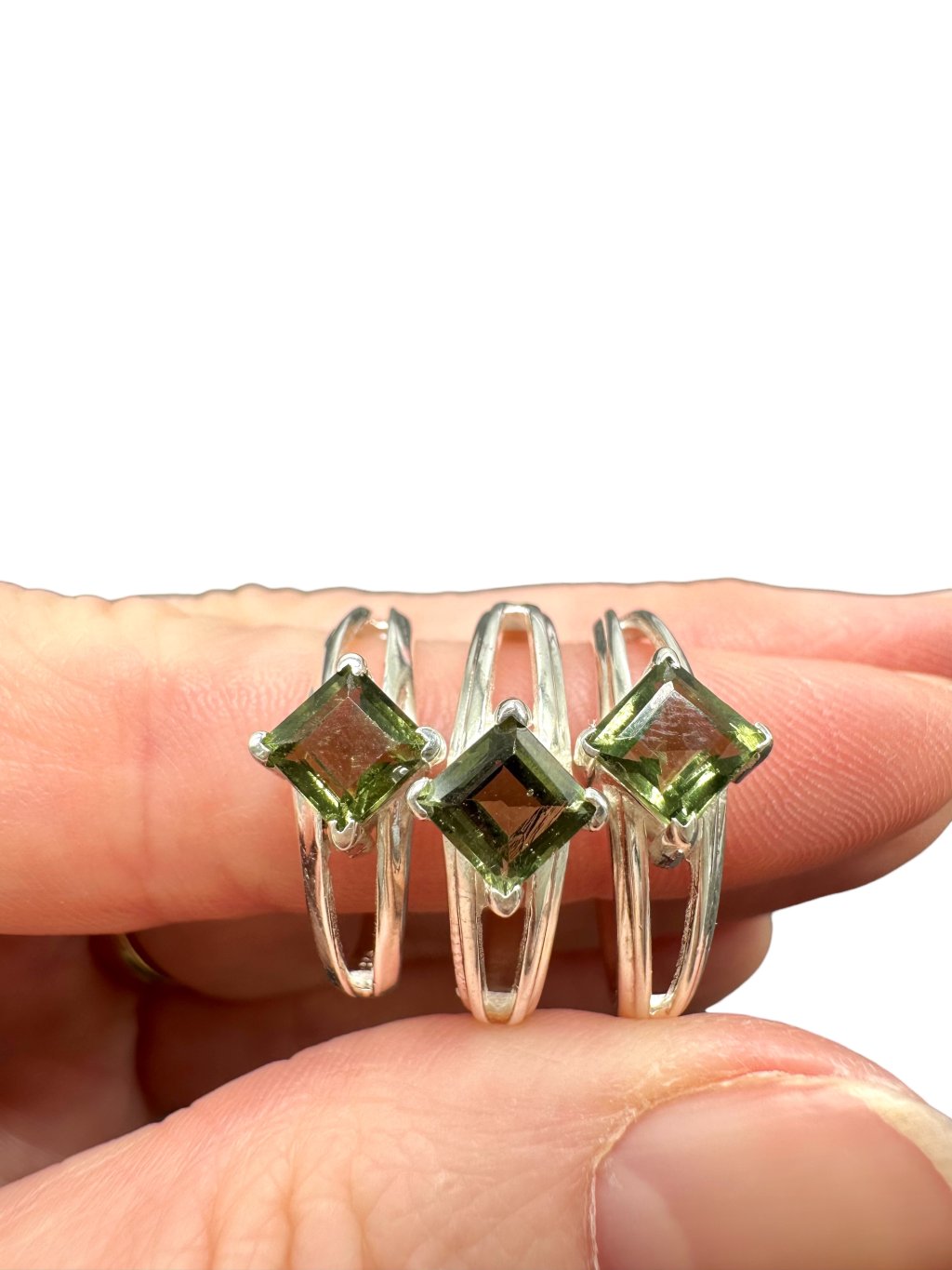 3 Stück Silberringe, verschiedene Größe, mit geschliffenen Moldaviten