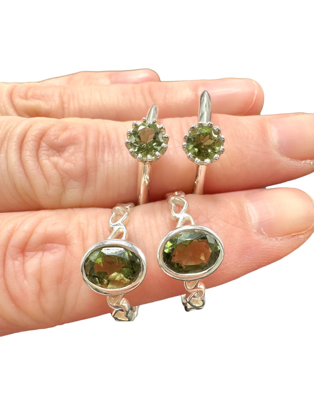 4 Stück Silberringe, Größe 54, mit geschliffenen Moldaviten