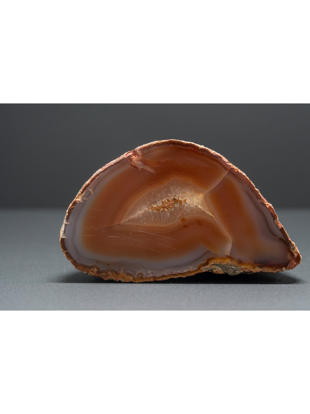 Brasilianische Achate gehören zu den bekanntesten und am weitesten verbreiteten auf dem Weltmarkt. Sie stammen hauptsächlich aus südbrasilianischen Gebieten wie dem Bundesstaat Rio Grande do Sul, wo sie in den Hohlräumen alter Lavaströme zu finden sind. Im Laufe der Zeit füllten sich diese Hohlräume mit kieselsäurereichen Quarzlösungen, aus denen der geschichtete Chalcedon entstand. Da die Hohlräume relativ groß sind, können brasilianische Achate eine beachtliche Größe erreichen, oft mit einem gut ausgebildeten kristallinen Inneren.