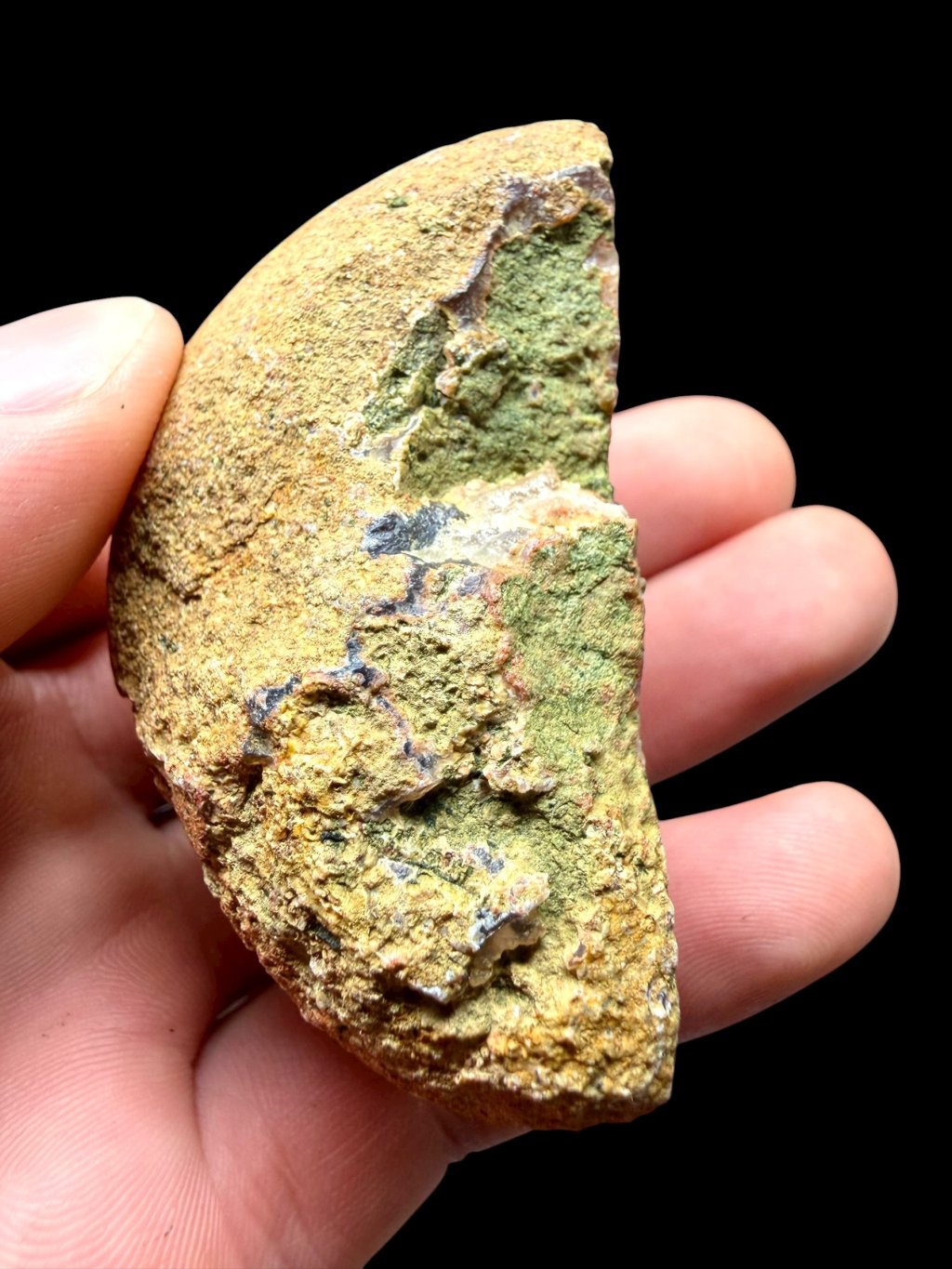 Die hiesigen Funde schöner Quarzgeoden und Achate gehören qualitativ zu den Spitzenstücken, ebenso wie die sehr hochwertigen lokalen Jaspis. Die Oberfläche der „Knollen“ besteht hier nicht aus grünlichgrauem Chlorit „Delessit“ wie an anderen Fundorten, sondern meist aus einer feinkörnigen, ziegelrot gefärbten Kruste, die aus einer Mischung von Zeolithen besteht, wobei die roten Ränder der Knollen vom Zeolith Mordenit gebildet werden.