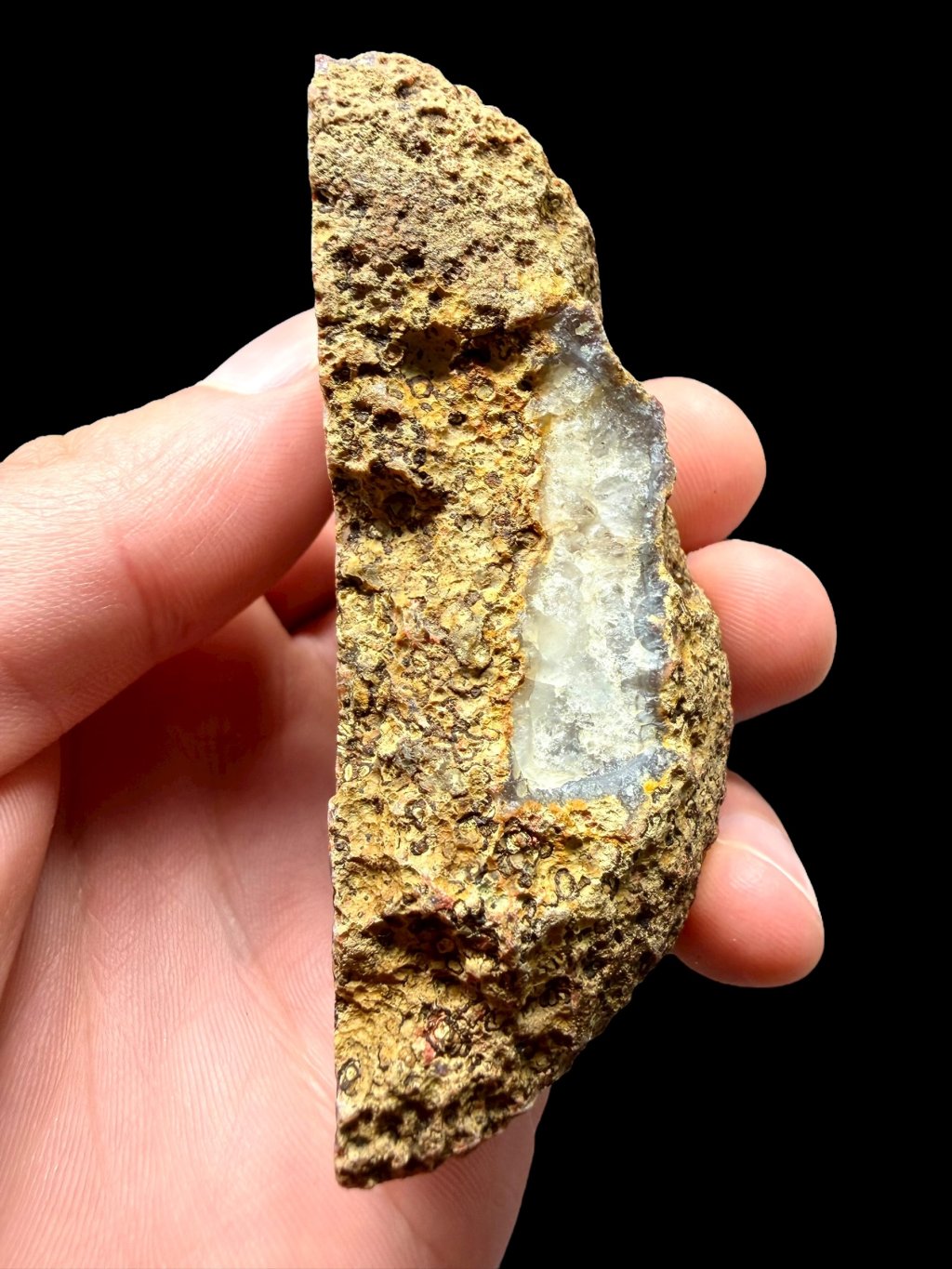 Die hiesigen Funde schöner Quarzgeoden und Achate gehören qualitativ zu den Spitzenstücken, ebenso wie die sehr hochwertigen lokalen Jaspis. Die Oberfläche der „Knollen“ besteht hier nicht aus grünlichgrauem Chlorit „Delessit“ wie an anderen Fundorten, sondern meist aus einer feinkörnigen, ziegelrot gefärbten Kruste, die aus einer Mischung von Zeolithen besteht, wobei die roten Ränder der Knollen vom Zeolith Mordenit gebildet werden.