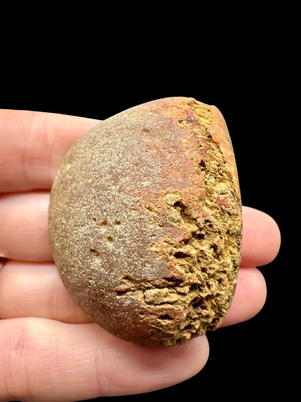 Die hiesigen Funde schöner Quarzgeoden und Achate gehören qualitativ zu den Spitzenstücken, ebenso wie die sehr hochwertigen lokalen Jaspis. Die Oberfläche der „Knollen“ besteht hier nicht aus grünlichgrauem Chlorit „Delessit“ wie an anderen Fundorten, sondern meist aus einer feinkörnigen, ziegelrot gefärbten Kruste, die aus einer Mischung von Zeolithen besteht, wobei die roten Ränder der Knollen vom Zeolith Mordenit gebildet werden.