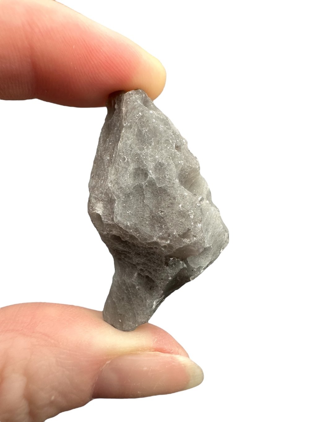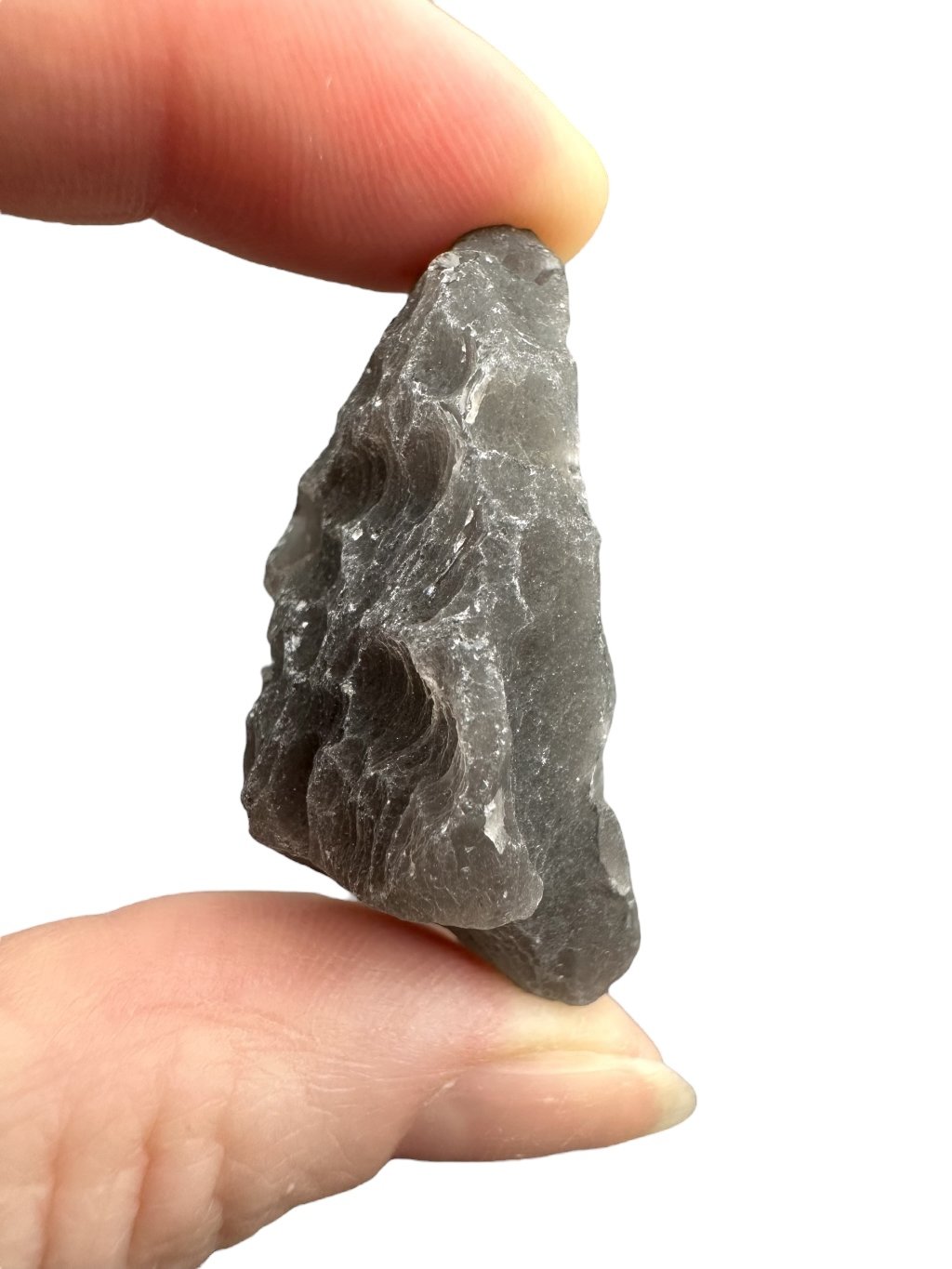 Dieser Stein hat eine dunkle, fast undurchsichtige Farbe, die von grau bis schwarz reicht. Die Oberfläche kann glasig und strukturiert sein, manchmal mit winzigen Bläschen, was typisch für Tektite ist.