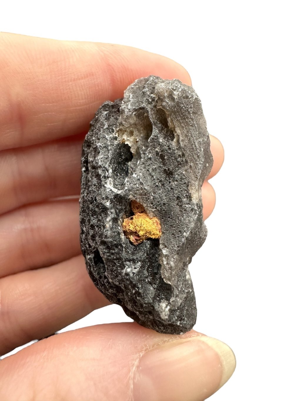 Dieser Stein hat eine dunkle, fast undurchsichtige Farbe, die von grau bis schwarz reicht. Die Oberfläche kann glasig und strukturiert sein, manchmal mit winzigen Bläschen, was typisch für Tektite ist.