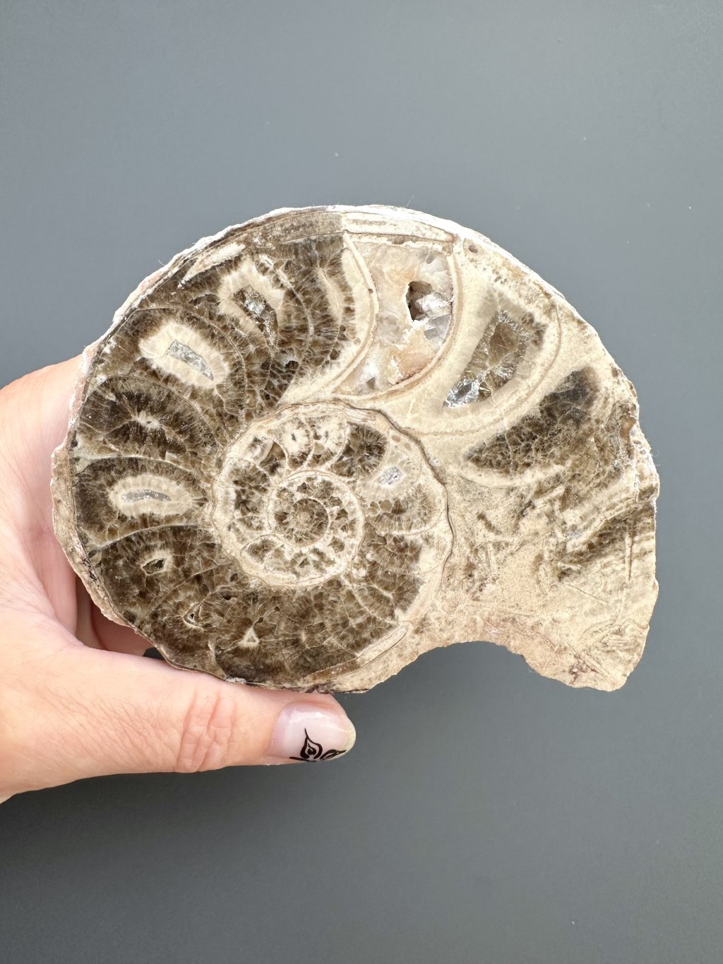 - Komplexe innere Struktur: Die Trennwände zwischen den Kammern bildeten spezifische Muster (so genannte Nähte), die von Art zu Art variieren und den Paläontologen helfen, sie zu identifizieren.