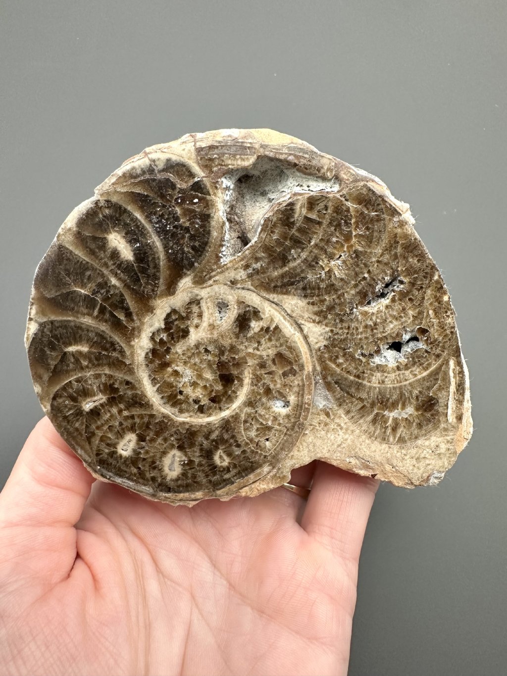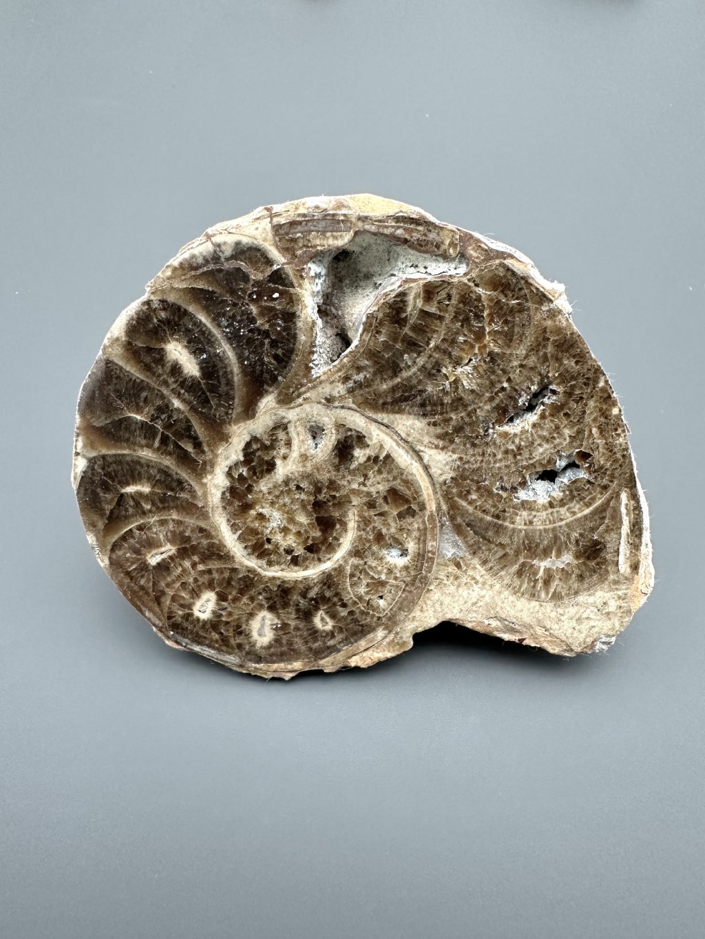 - Komplexe innere Struktur: Die Trennwände zwischen den Kammern bildeten spezifische Muster (so genannte Nähte), die von Art zu Art variieren und den Paläontologen helfen, sie zu identifizieren.