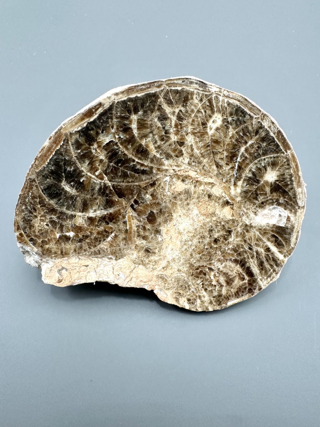 - Komplexe innere Struktur: Die Trennwände zwischen den Kammern bildeten spezifische Muster (so genannte Nähte), die von Art zu Art variieren und den Paläontologen helfen, sie zu identifizieren.