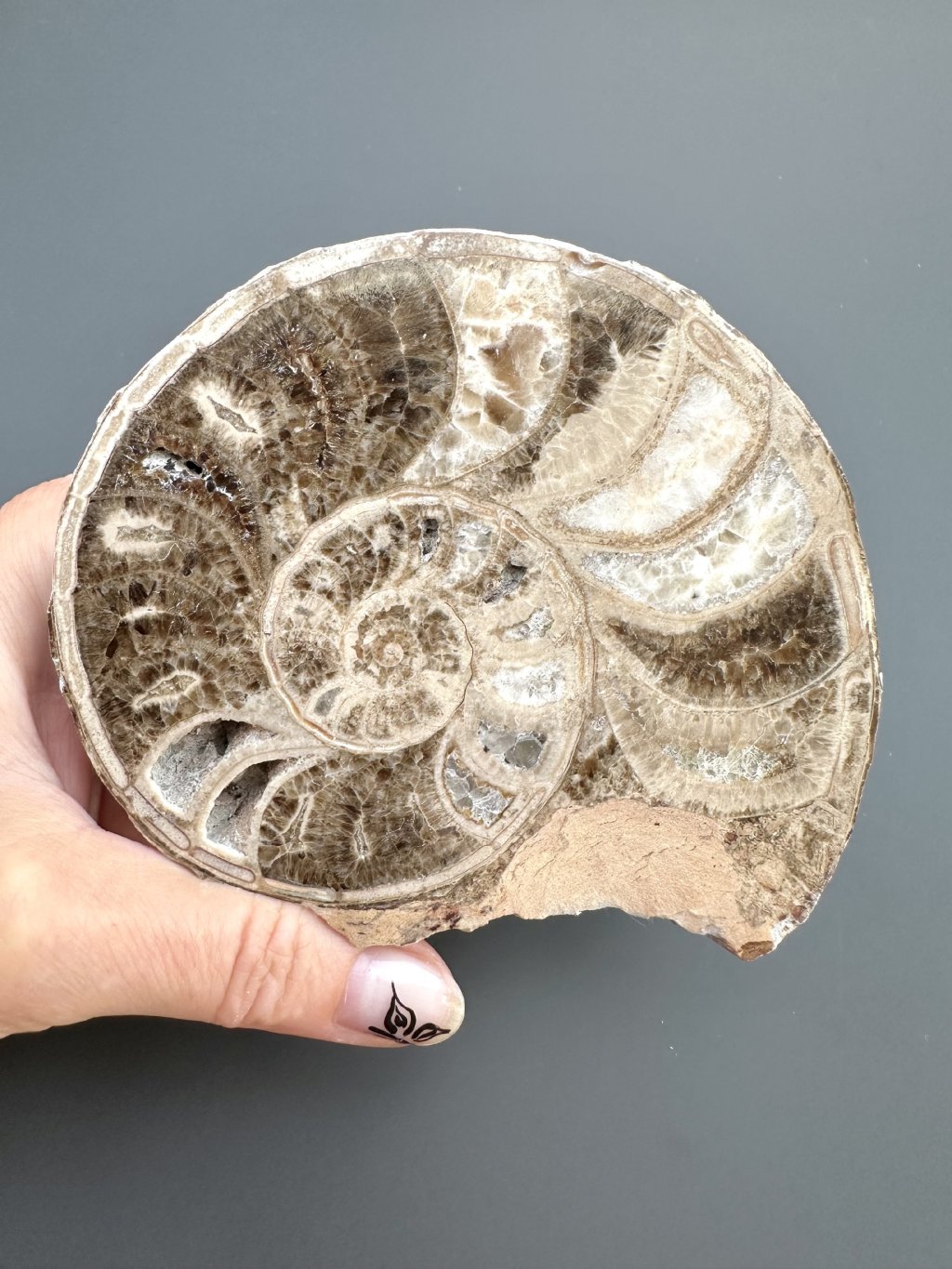 - Komplexe innere Struktur: Die Trennwände zwischen den Kammern bildeten spezifische Muster (so genannte Nähte), die von Art zu Art variieren und den Paläontologen helfen, sie zu identifizieren.