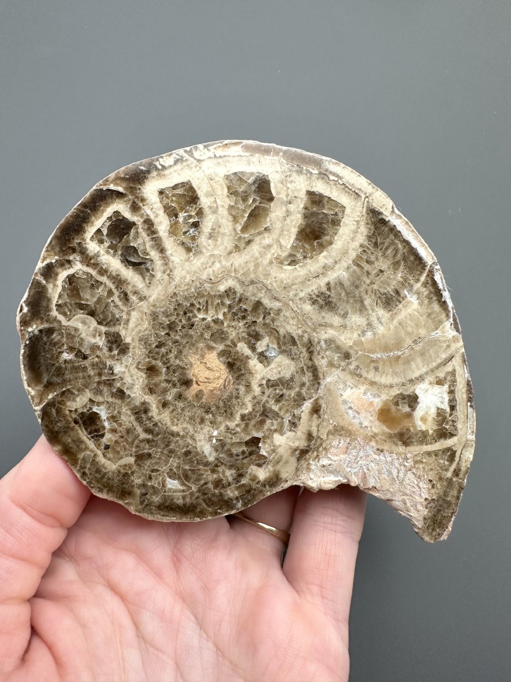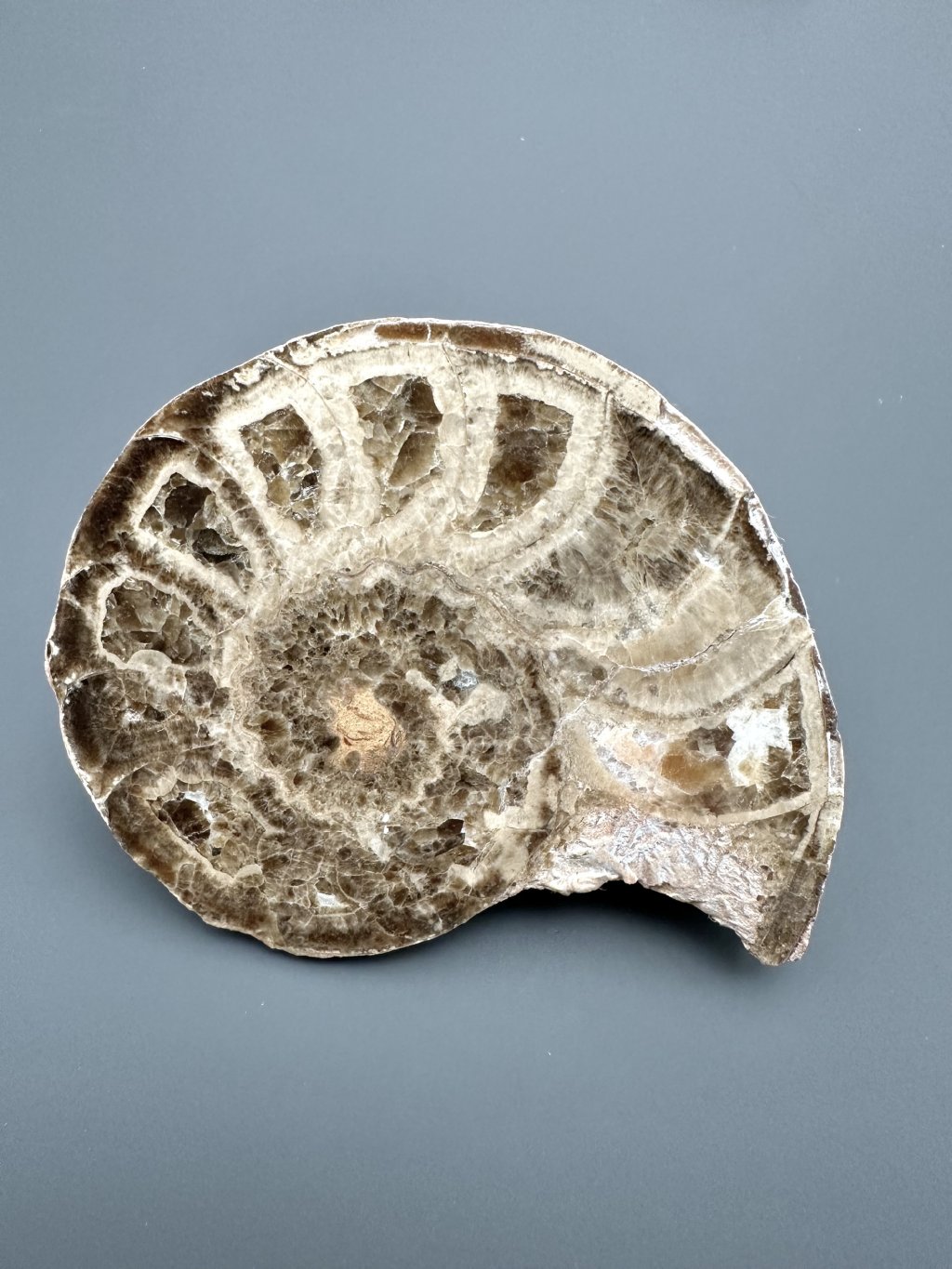 - Komplexe innere Struktur: Die Trennwände zwischen den Kammern bildeten spezifische Muster (so genannte Nähte), die von Art zu Art variieren und den Paläontologen helfen, sie zu identifizieren.