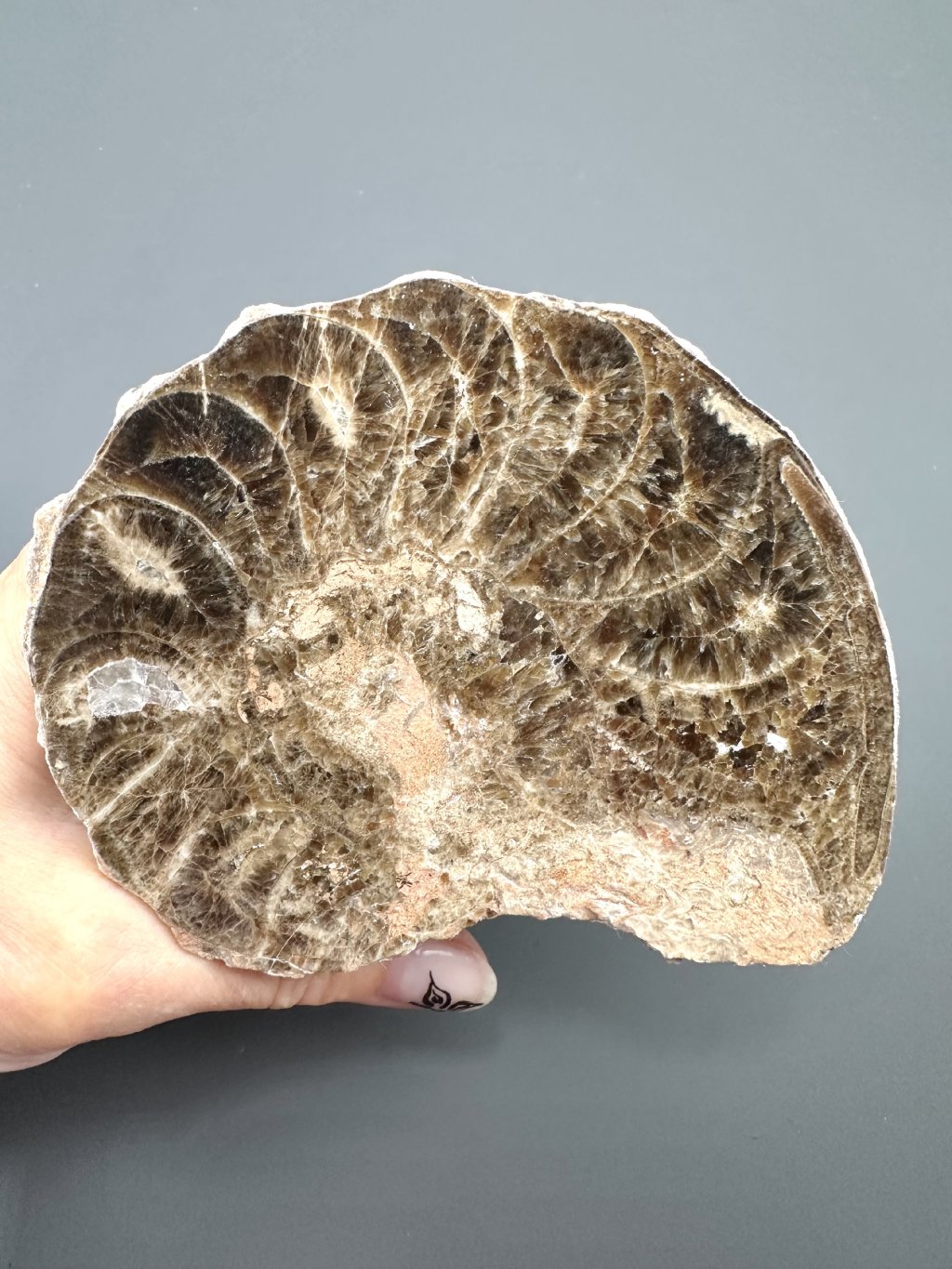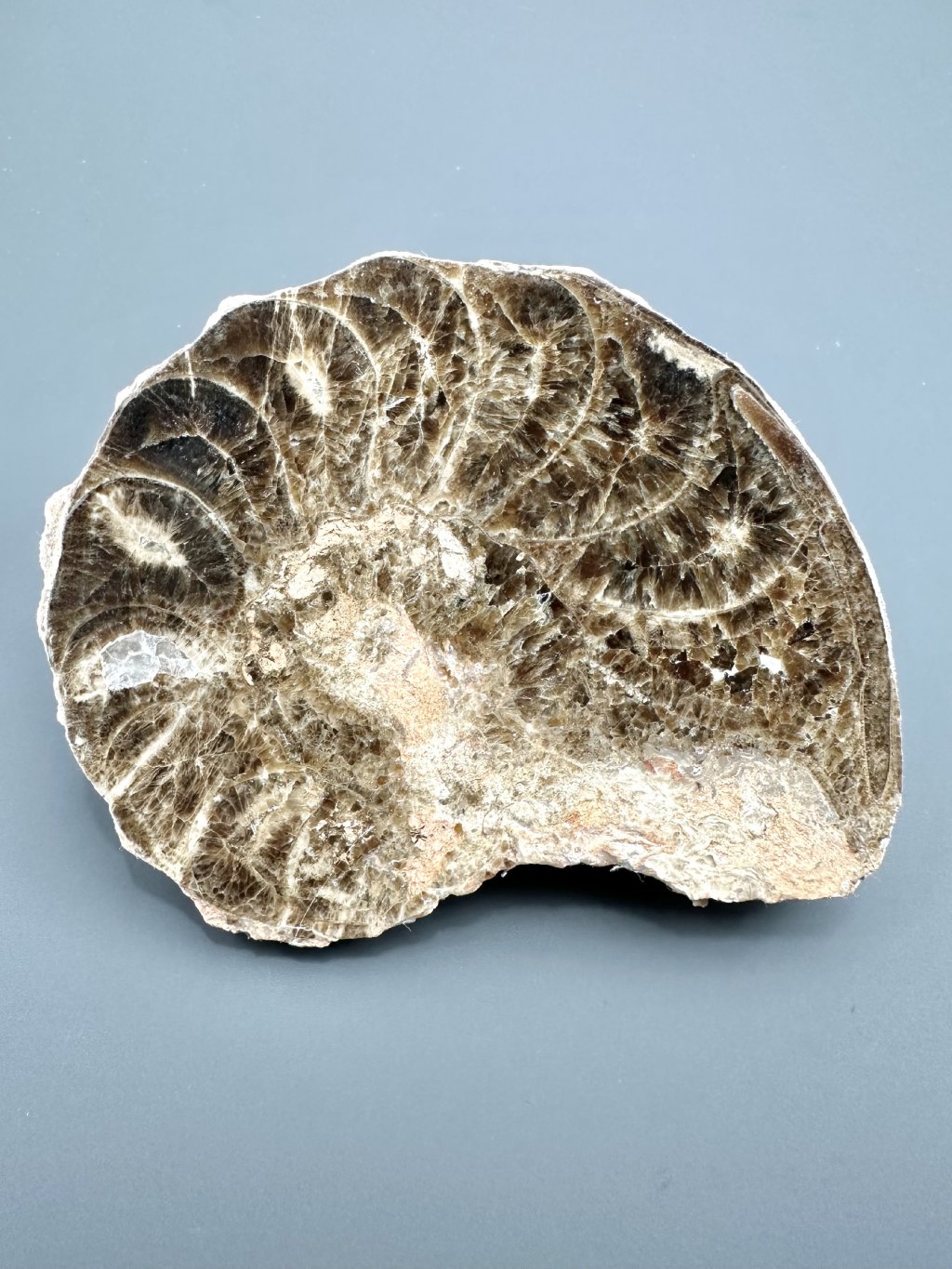 - Komplexe innere Struktur: Die Trennwände zwischen den Kammern bildeten spezifische Muster (so genannte Nähte), die von Art zu Art variieren und den Paläontologen helfen, sie zu identifizieren.