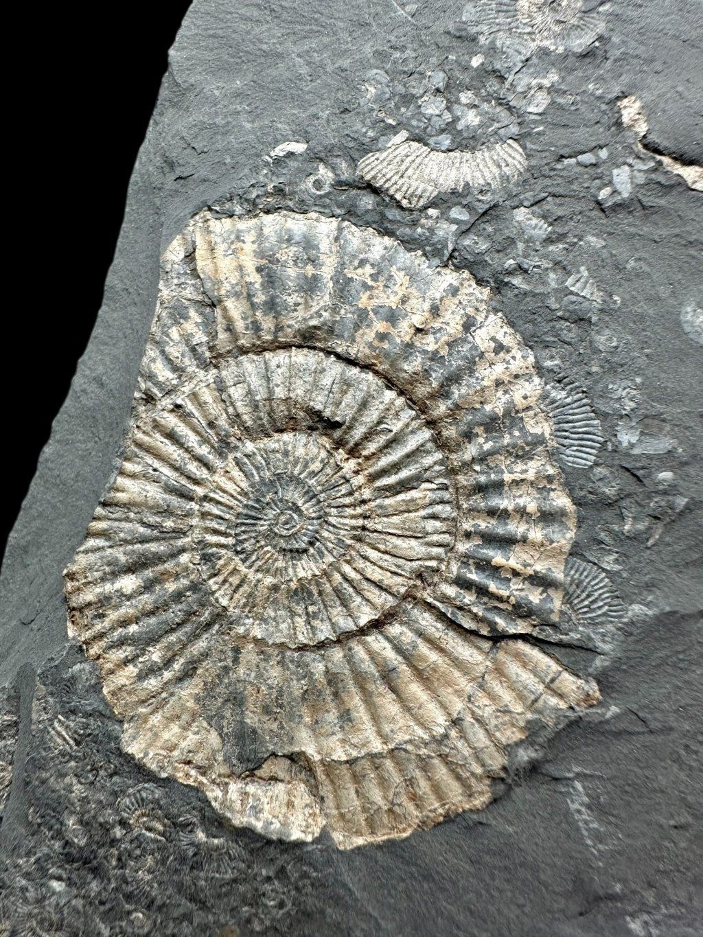 Dactylioceras ist eine ausgestorbene Gattung mariner Kopffüßer aus dem Unterjura, die zu den bekannten und gesuchten Ammoniten aus der deutschen Fundstelle Holzmaden gehört. Diese Region im Südwesten Deutschlands ist berühmt für außergewöhnlich gut erhaltene Fossilien, die in dunklen Tonschiefern abgelagert sind, bekannt als Posidonienschiefer. Diese Sedimente entstanden vor etwa 183 Millionen Jahren, als ein großer Teil des heutigen Mitteleuropas von einem Meer bedeckt war.