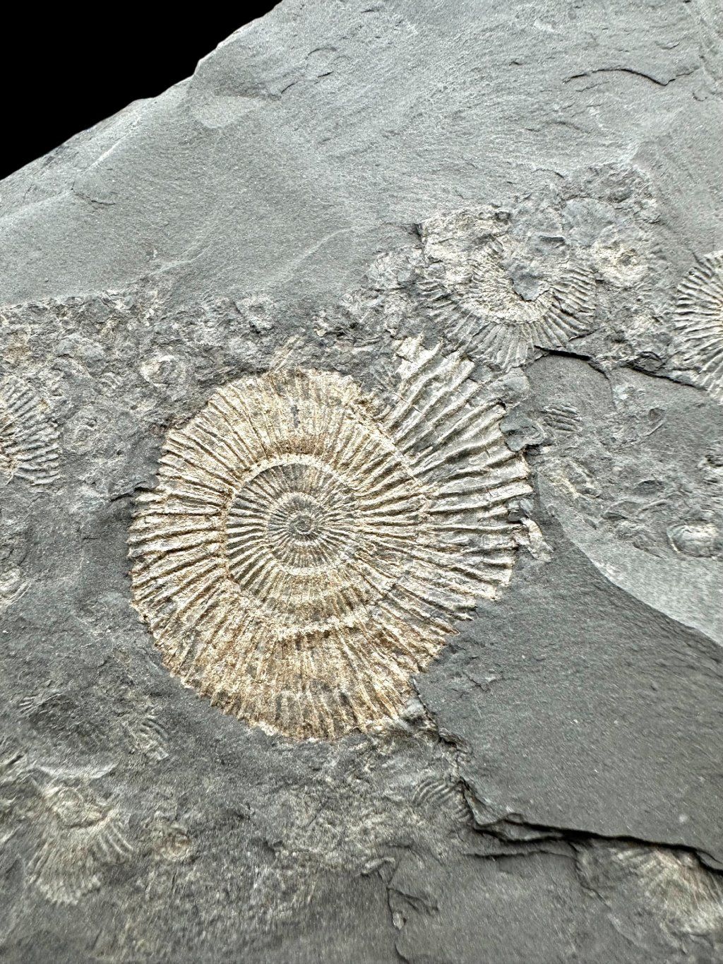 Dactylioceras ist eine ausgestorbene Gattung mariner Kopffüßer aus dem Unterjura, die zu den bekannten und gesuchten Ammoniten aus der deutschen Fundstelle Holzmaden gehört. Diese Region im Südwesten Deutschlands ist berühmt für außergewöhnlich gut erhaltene Fossilien, die in dunklen Tonschiefern abgelagert sind, bekannt als Posidonienschiefer. Diese Sedimente entstanden vor etwa 183 Millionen Jahren, als ein großer Teil des heutigen Mitteleuropas von einem Meer bedeckt war.