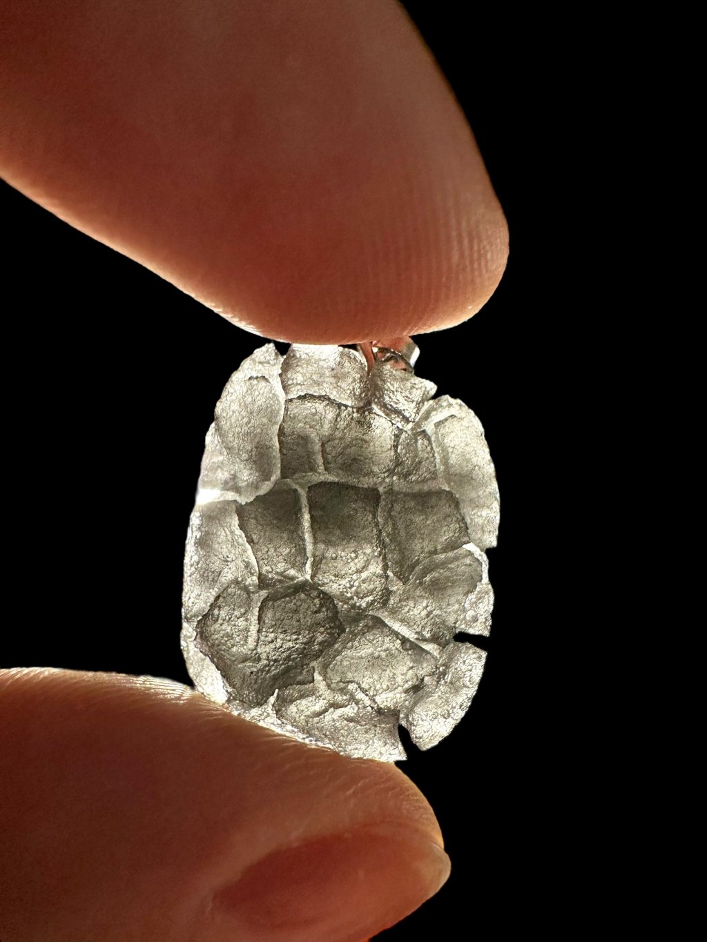 Dieser kürzlich entdeckte Obsidian-Typ gehört zu den schönsten Obsidiangesteinen der Welt. Er unterscheidet sich von anderen Obsidianarten durch seine ausgeprägt tiefe Struktur, die an südböhmische Moldavite erinnert (insbesondere an die Besednice Jezkovna). Seine Skulptur entstand durch schnelles Abkühlen, Aufreißen der Oberfläche und anschließende langsame Einwirkung von Bodensäuren an der jeweiligen Fundstelle – ähnlich wie bei Moldaviten. Die genaue Fundstelle wird derzeit aus Schutzgründen geheim gehalten, um Raubgrabungen und mögliche Zerstörungen der Landschaft zu verhindern. Wir glauben, dass das weltweite Interesse an diesem seltenen und ästhetisch ansprechenden Obsidian rapide zunehmen wird, sobald die genaue Lokalität offengelegt und wissenschaftlich untersucht wird – insbesondere aufgrund seines hohen Potenzials für die Verwendung in der Schmuckindustrie.