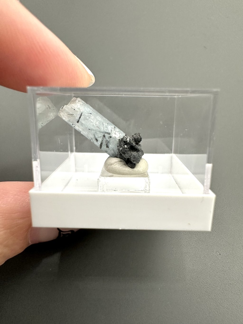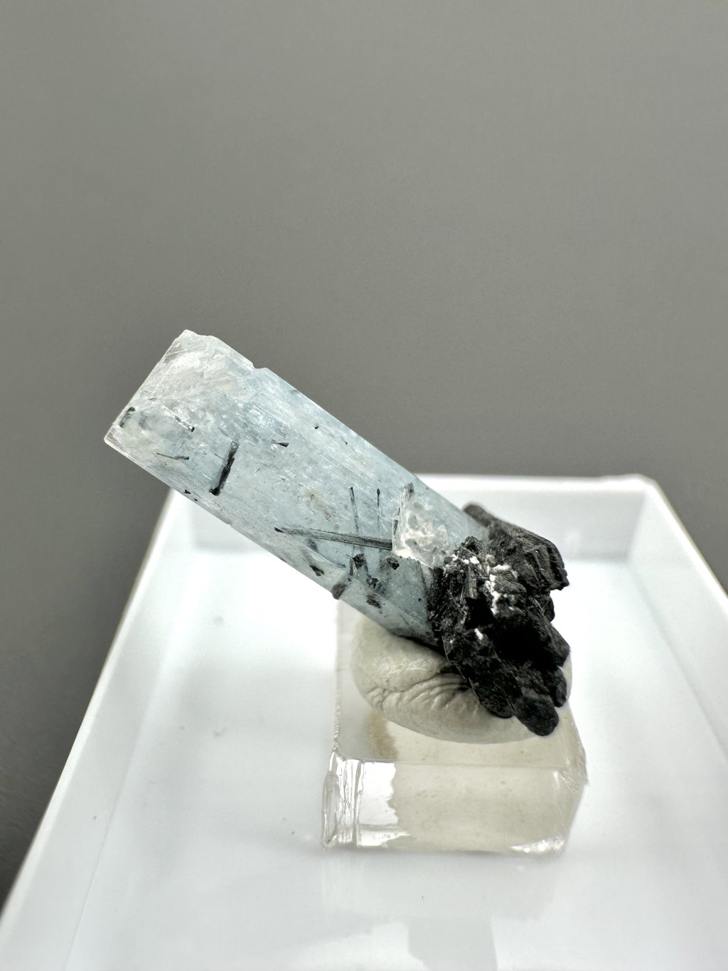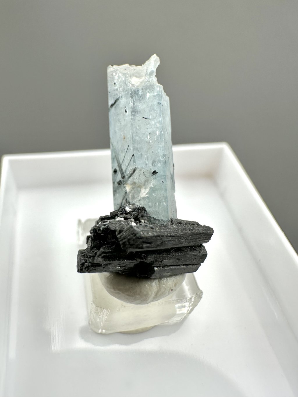 - Rauchquarz: Diese Kombination ist bei Sammlern sehr beliebt. Transparente oder durchscheinende Rauchquarzkristalle sind oft neben Aquamarin zu finden und tragen zum ästhetischen Wert der Gesamtkomposition bei.