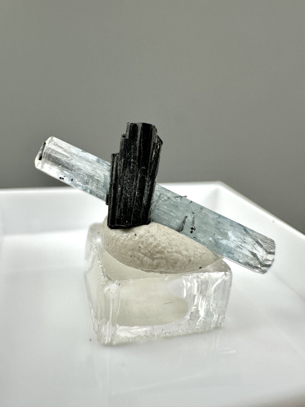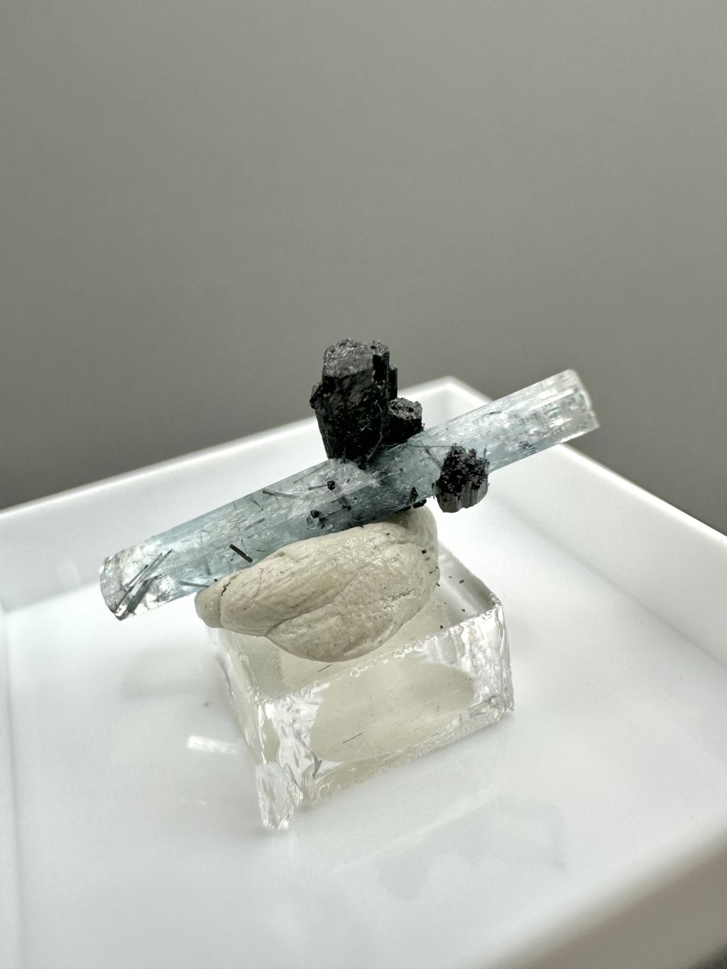 - Rauchquarz: Diese Kombination ist bei Sammlern sehr beliebt. Transparente oder durchscheinende Rauchquarzkristalle sind oft neben Aquamarin zu finden und tragen zum ästhetischen Wert der Gesamtkomposition bei.