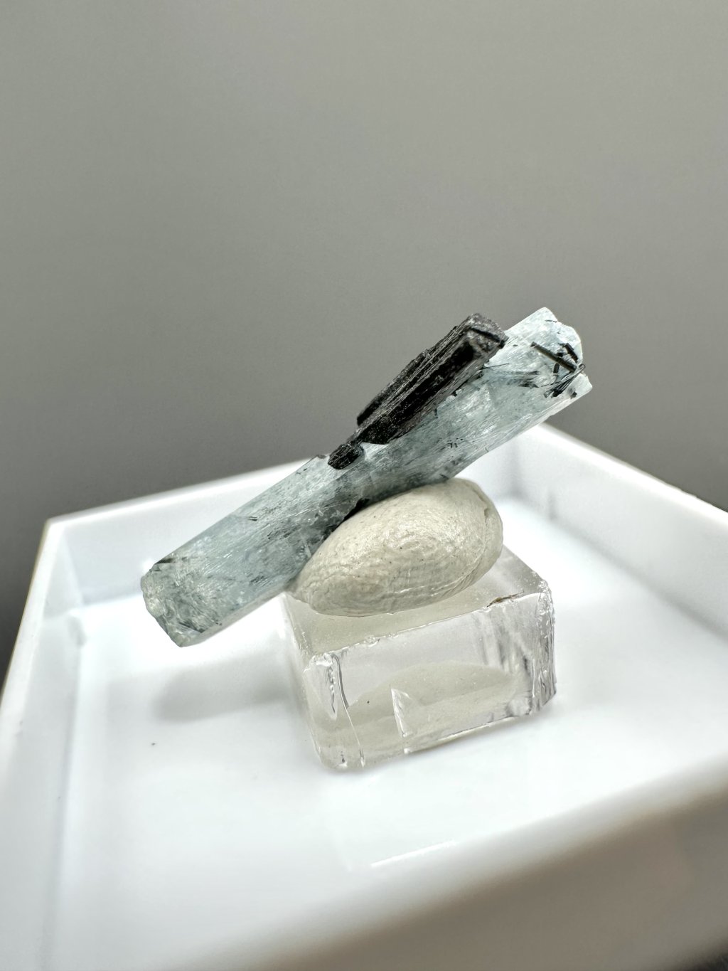- Rauchquarz: Diese Kombination ist bei Sammlern sehr beliebt. Transparente oder durchscheinende Rauchquarzkristalle sind oft neben Aquamarin zu finden und tragen zum ästhetischen Wert der Gesamtkomposition bei.