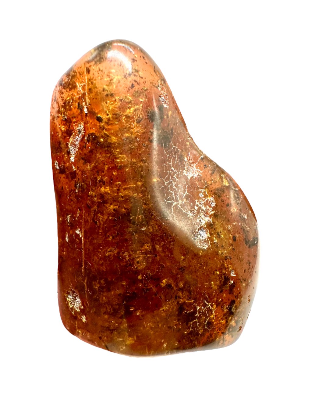 Polnischer Bernstein ist auch für seine besonders gut erhaltenen Einschlüsse bekannt. Zu den häufigsten gehören kleine fossile Insekten aus der Urzeit – etwa Fliegen, Mücken, Wespen, Käfer, Termiten oder Ameisen. Diese Exemplare zeigen oft feinste Details von Körper und Flügeln. Seltener, aber sehr interessant sind pflanzliche Einschlüsse wie Nadelbaumnadeln, Pollenkörner, Blattfragmente, Moose oder Flechten. Diese Überreste stammen aus prähistorischen Wäldern, die einst Nordeuropa bedeckten. Ebenfalls selten, aber beeindruckend, sind Spinnen, Hundertfüßer, Milben oder Larven.