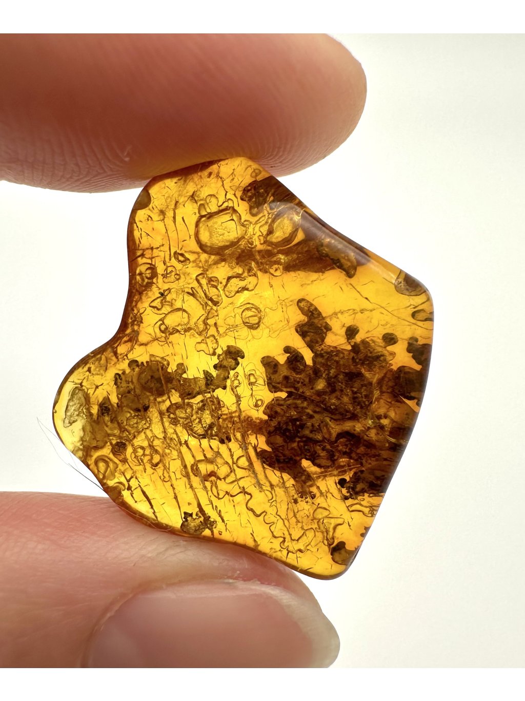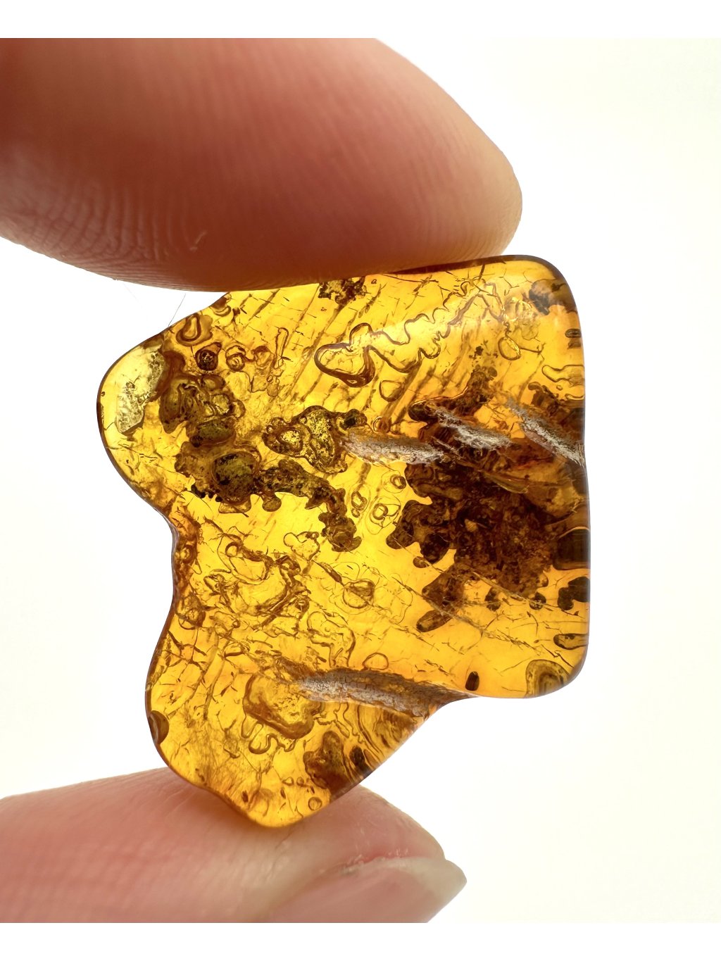 Polnischer Bernstein ist auch für seine besonders gut erhaltenen Einschlüsse bekannt. Zu den häufigsten gehören kleine fossile Insekten aus der Urzeit – etwa Fliegen, Mücken, Wespen, Käfer, Termiten oder Ameisen. Diese Exemplare zeigen oft feinste Details von Körper und Flügeln. Seltener, aber sehr interessant sind pflanzliche Einschlüsse wie Nadelbaumnadeln, Pollenkörner, Blattfragmente, Moose oder Flechten. Diese Überreste stammen aus prähistorischen Wäldern, die einst Nordeuropa bedeckten. Ebenfalls selten, aber beeindruckend, sind Spinnen, Hundertfüßer, Milben oder Larven.