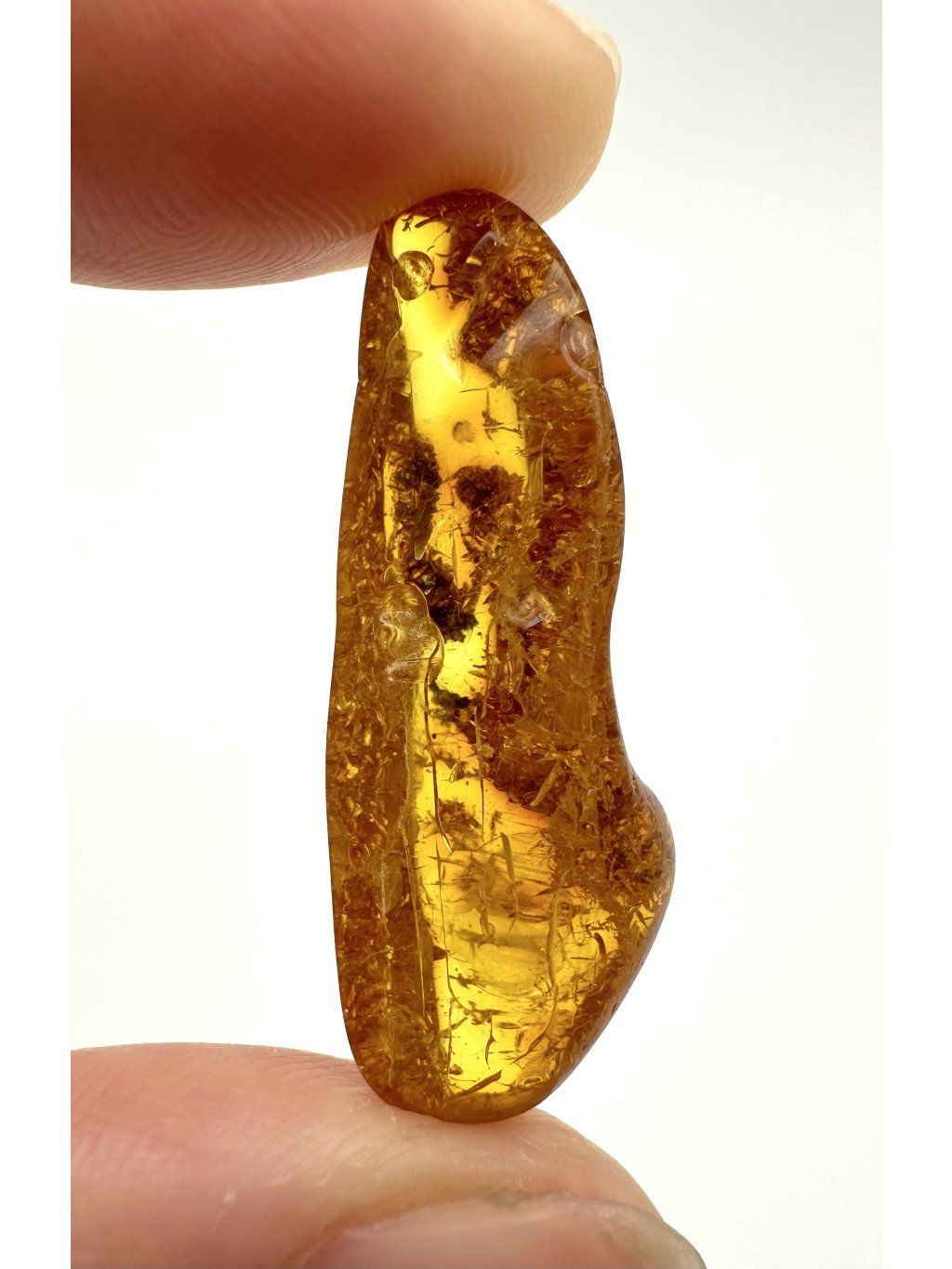 Polnischer Bernstein ist auch für seine besonders gut erhaltenen Einschlüsse bekannt. Zu den häufigsten gehören kleine fossile Insekten aus der Urzeit – etwa Fliegen, Mücken, Wespen, Käfer, Termiten oder Ameisen. Diese Exemplare zeigen oft feinste Details von Körper und Flügeln. Seltener, aber sehr interessant sind pflanzliche Einschlüsse wie Nadelbaumnadeln, Pollenkörner, Blattfragmente, Moose oder Flechten. Diese Überreste stammen aus prähistorischen Wäldern, die einst Nordeuropa bedeckten. Ebenfalls selten, aber beeindruckend, sind Spinnen, Hundertfüßer, Milben oder Larven.