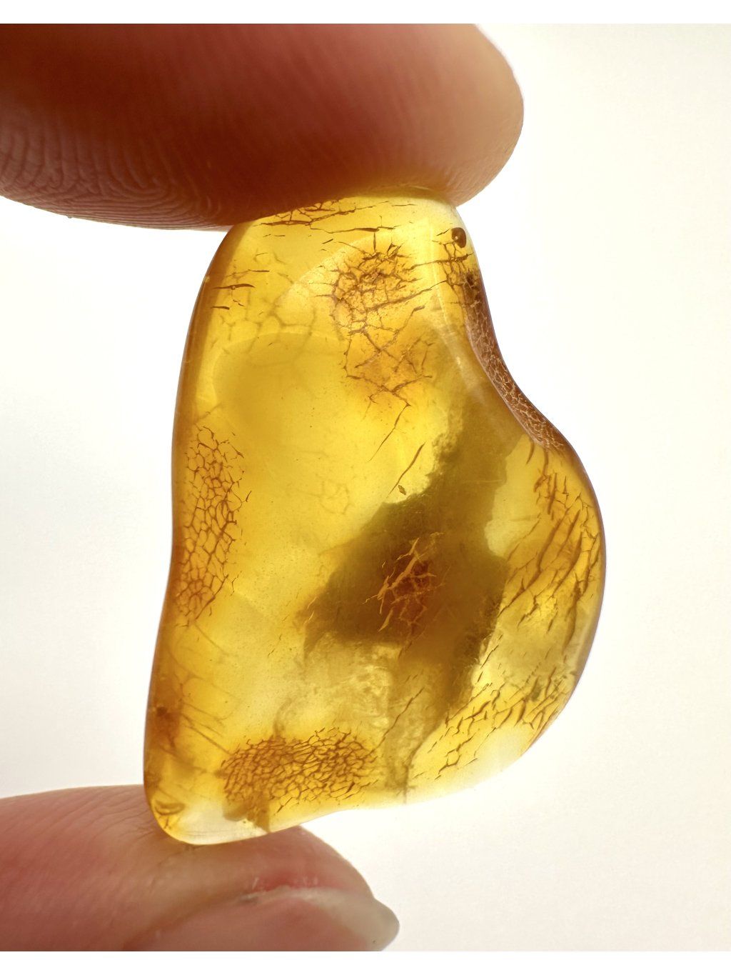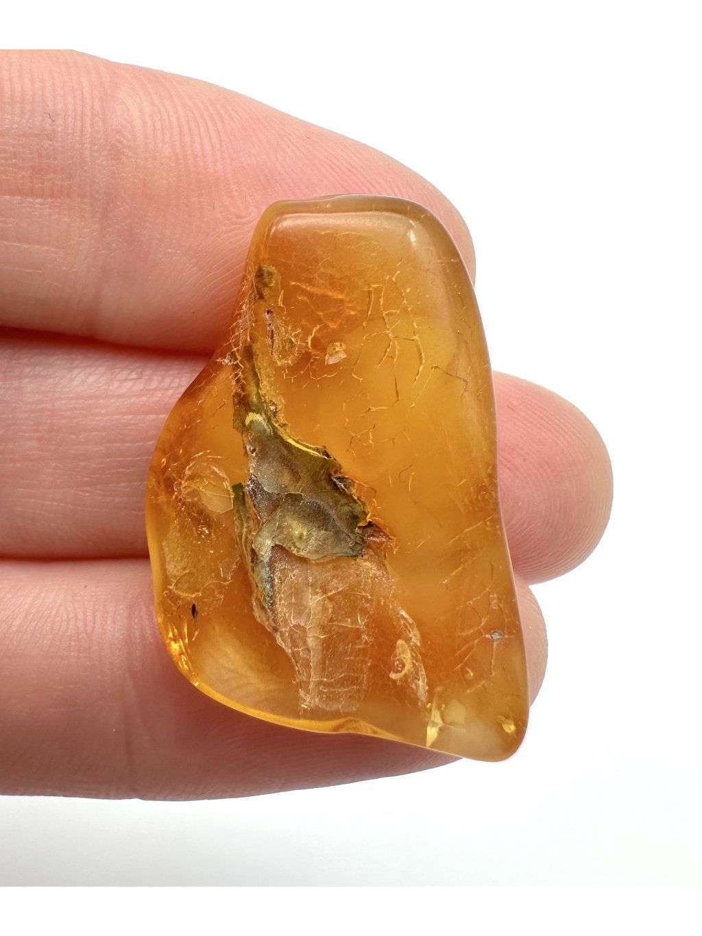 Polnischer Bernstein ist auch für seine besonders gut erhaltenen Einschlüsse bekannt. Zu den häufigsten gehören kleine fossile Insekten aus der Urzeit – etwa Fliegen, Mücken, Wespen, Käfer, Termiten oder Ameisen. Diese Exemplare zeigen oft feinste Details von Körper und Flügeln. Seltener, aber sehr interessant sind pflanzliche Einschlüsse wie Nadelbaumnadeln, Pollenkörner, Blattfragmente, Moose oder Flechten. Diese Überreste stammen aus prähistorischen Wäldern, die einst Nordeuropa bedeckten. Ebenfalls selten, aber beeindruckend, sind Spinnen, Hundertfüßer, Milben oder Larven.
