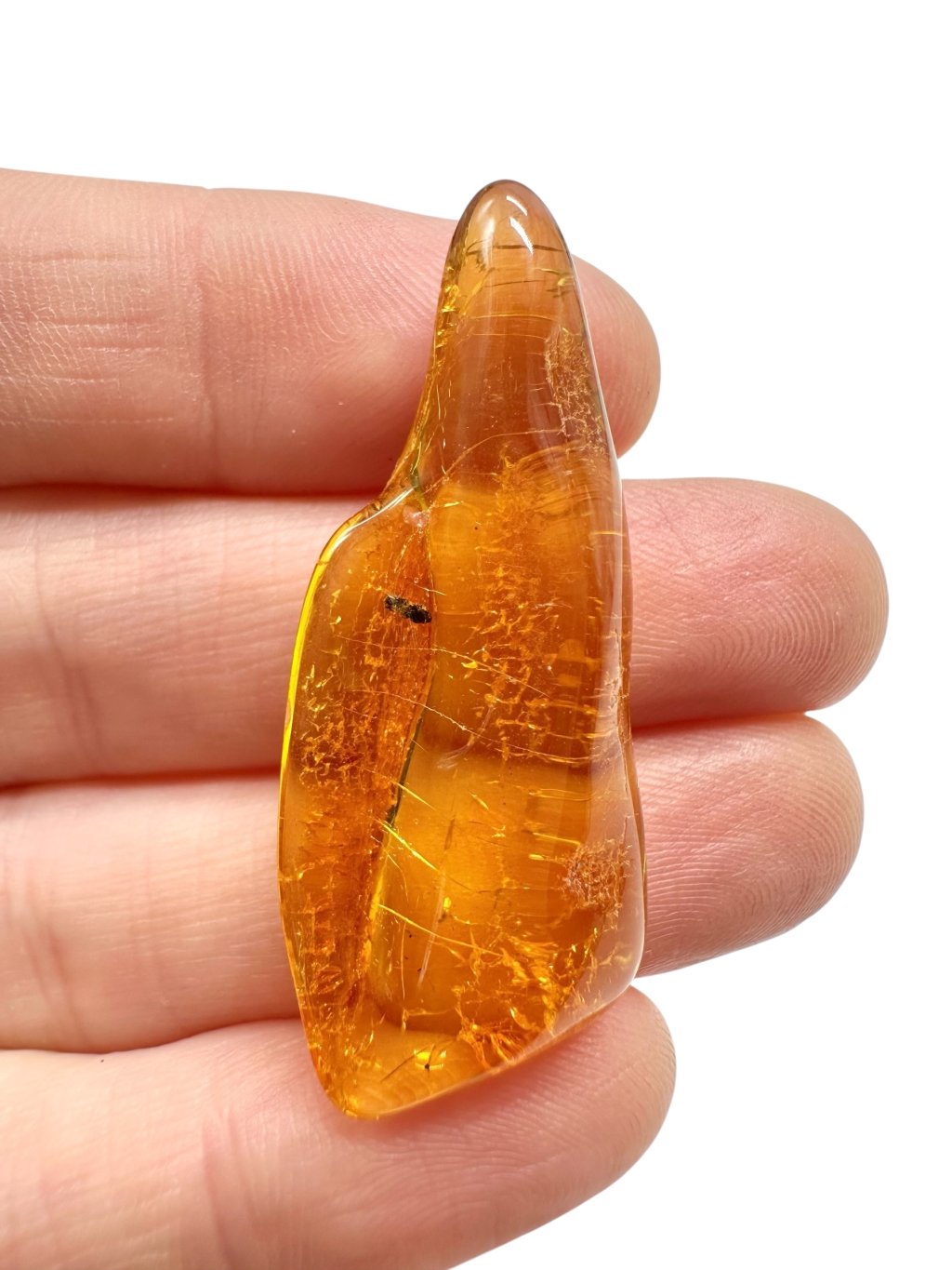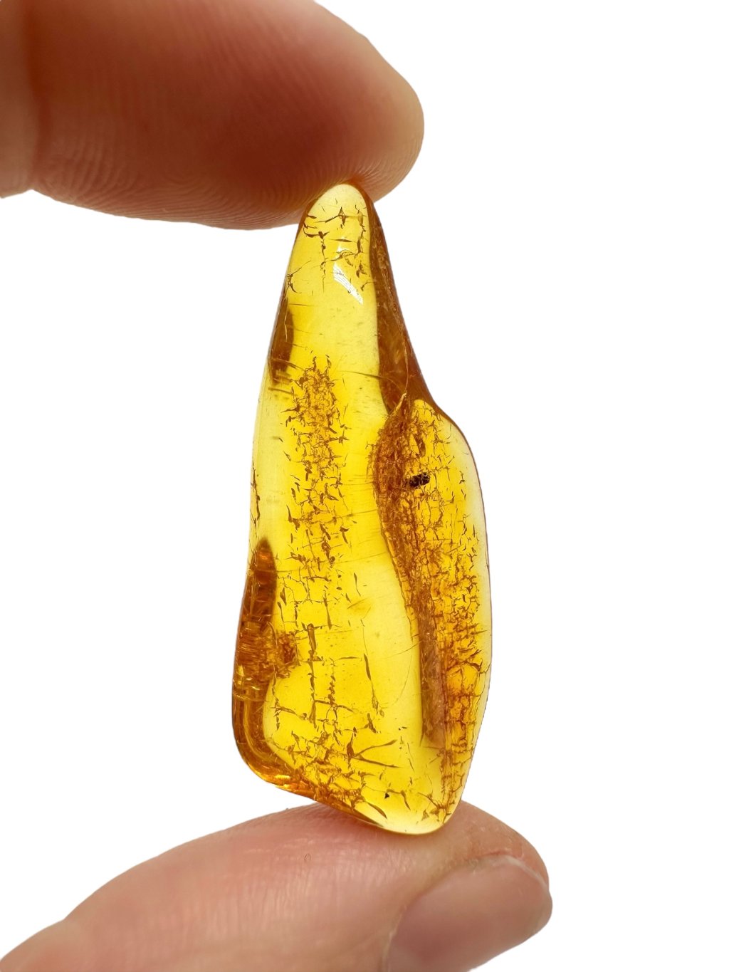 Litauischer Bernstein ist durch seine markante Farbe bekannt, die häufig von hell- bis dunkelgelb reicht und in honigfarbene oder orangefarbene Töne übergeht. Es gibt auch dunklere Varianten – von braun bis nahezu schwarz – sowie seltenere Ausführungen in fast weiß oder grünlich. Aufgrund seines hohen Gehalts an Bernsteinsäure (bis zu etwa 8 %) gilt Baltischer Bernstein im Vergleich zu anderen Typen als hochwertiger. Er enthält oft natürliche Einschlüsse wie Luftblasen, Pflanzenreste oder kleine Insekten, was seinen Sammlerwert und ästhetischen Reiz deutlich steigert.