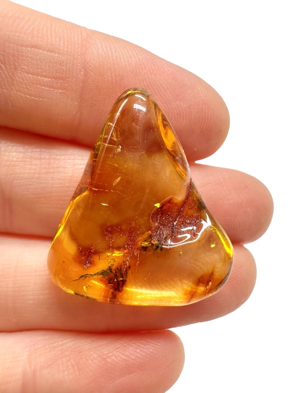 Litauischer Bernstein ist durch seine markante Farbe bekannt, die häufig von hell- bis dunkelgelb reicht und in honigfarbene oder orangefarbene Töne übergeht. Es gibt auch dunklere Varianten – von braun bis nahezu schwarz – sowie seltenere Ausführungen in fast weiß oder grünlich. Aufgrund seines hohen Gehalts an Bernsteinsäure (bis zu etwa 8 %) gilt Baltischer Bernstein im Vergleich zu anderen Typen als hochwertiger. Er enthält oft natürliche Einschlüsse wie Luftblasen, Pflanzenreste oder kleine Insekten, was seinen Sammlerwert und ästhetischen Reiz deutlich steigert.
