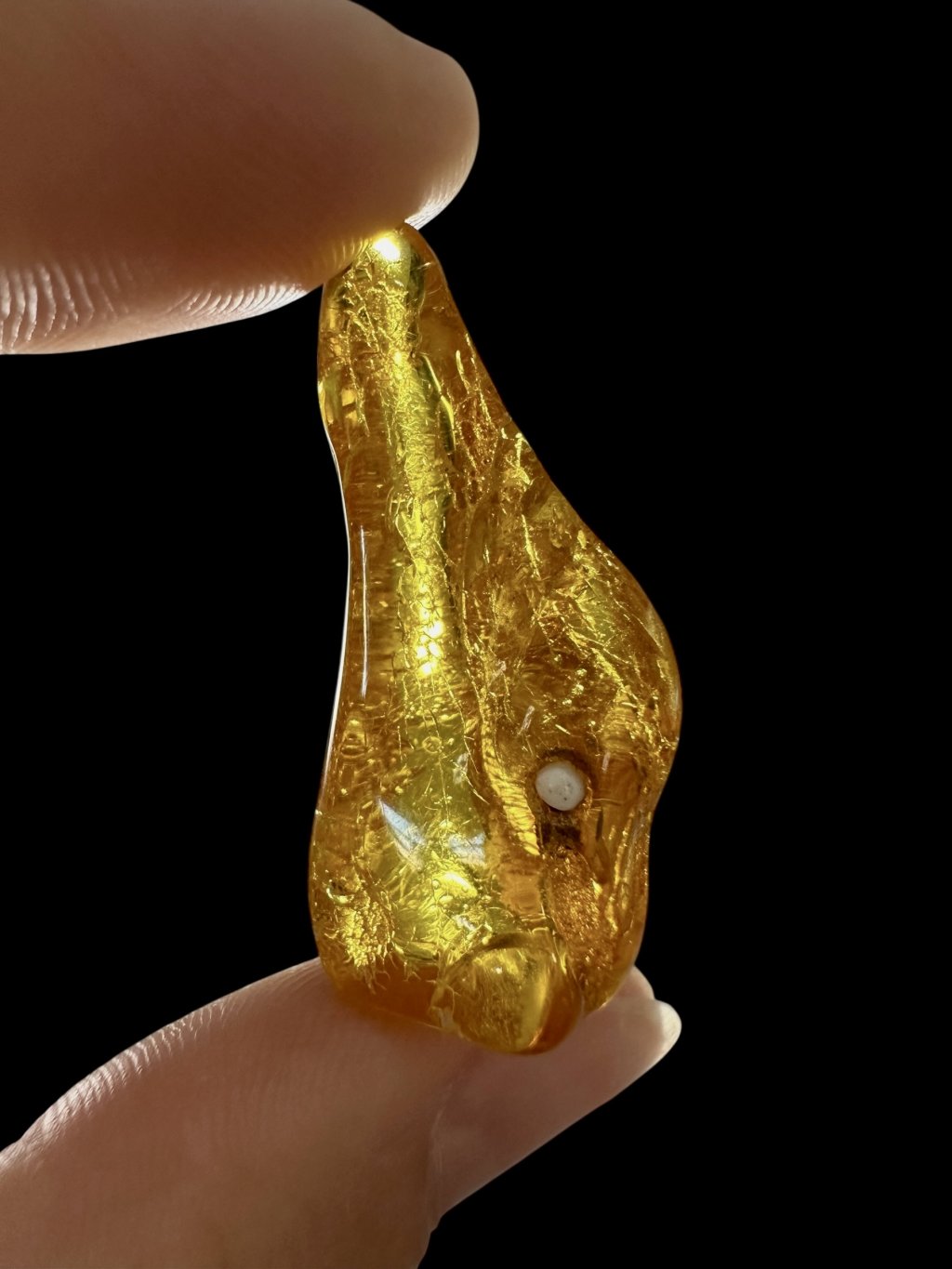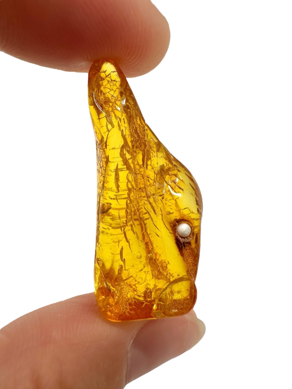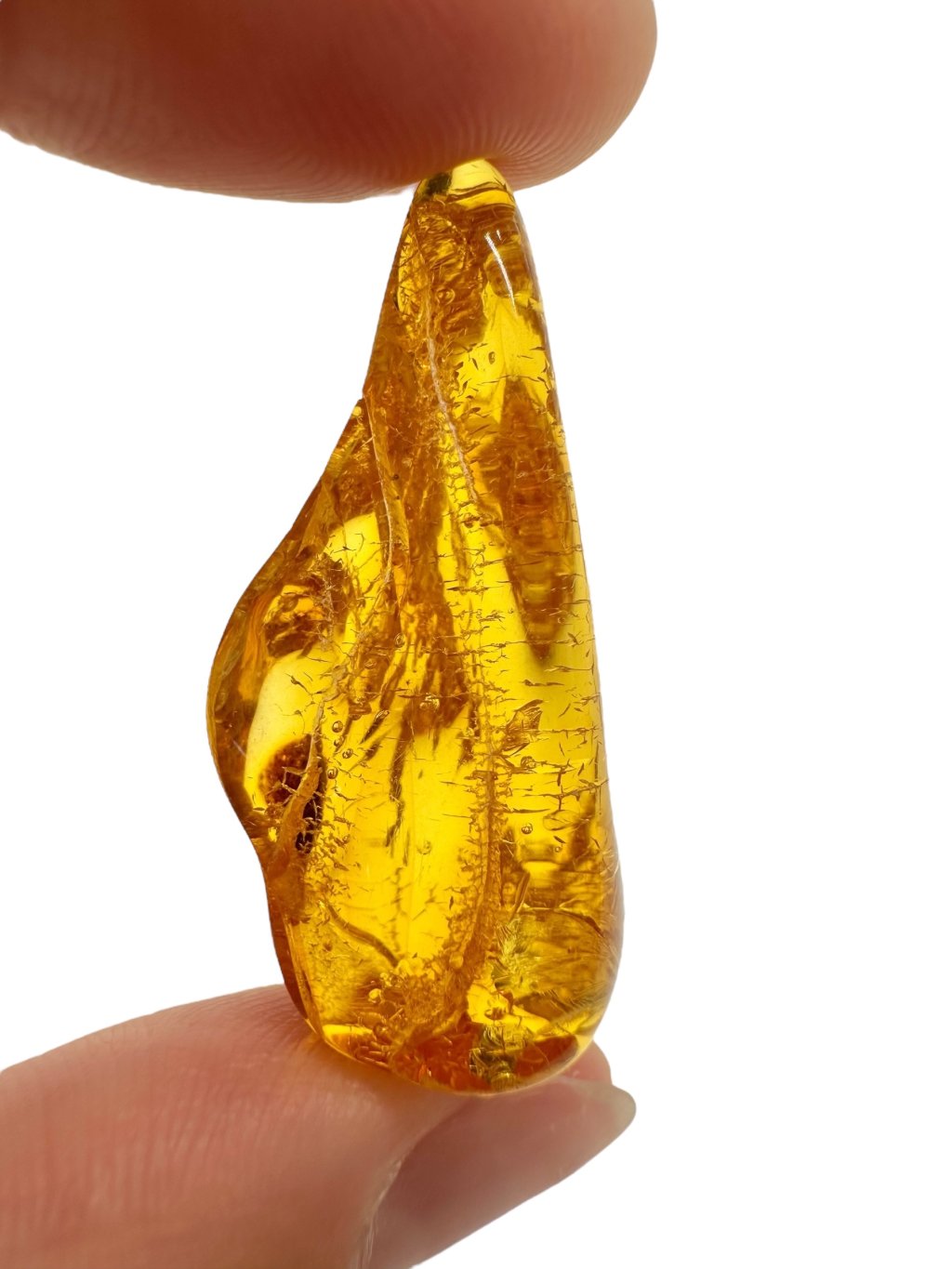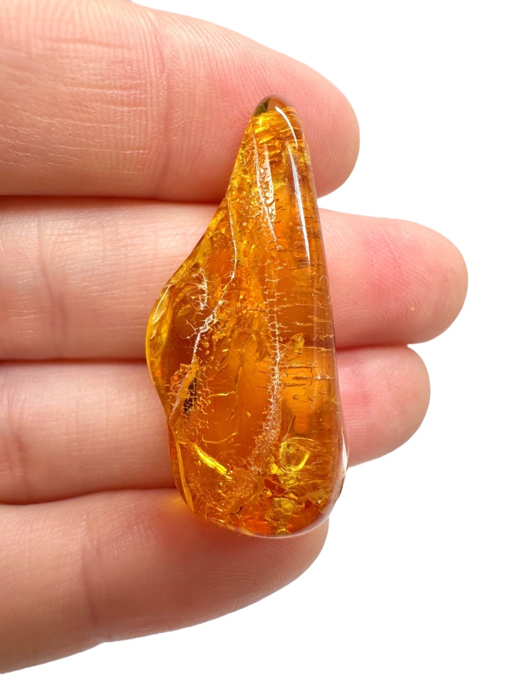 Litauischer Bernstein ist durch seine markante Farbe bekannt, die häufig von hell- bis dunkelgelb reicht und in honigfarbene oder orangefarbene Töne übergeht. Es gibt auch dunklere Varianten – von braun bis nahezu schwarz – sowie seltenere Ausführungen in fast weiß oder grünlich. Aufgrund seines hohen Gehalts an Bernsteinsäure (bis zu etwa 8 %) gilt Baltischer Bernstein im Vergleich zu anderen Typen als hochwertiger. Er enthält oft natürliche Einschlüsse wie Luftblasen, Pflanzenreste oder kleine Insekten, was seinen Sammlerwert und ästhetischen Reiz deutlich steigert.