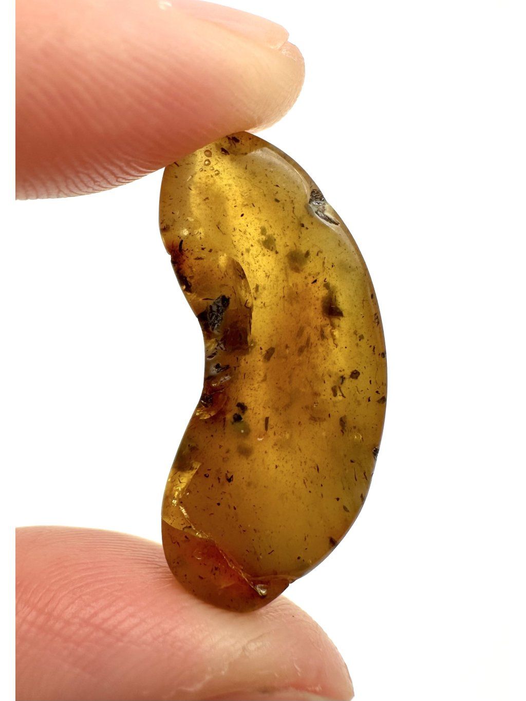 Polnischer Bernstein ist auch für seine besonders gut erhaltenen Einschlüsse bekannt. Zu den häufigsten gehören kleine fossile Insekten aus der Urzeit – etwa Fliegen, Mücken, Wespen, Käfer, Termiten oder Ameisen. Diese Exemplare zeigen oft feinste Details von Körper und Flügeln. Seltener, aber sehr interessant sind pflanzliche Einschlüsse wie Nadelbaumnadeln, Pollenkörner, Blattfragmente, Moose oder Flechten. Diese Überreste stammen aus prähistorischen Wäldern, die einst Nordeuropa bedeckten. Ebenfalls selten, aber beeindruckend, sind Spinnen, Hundertfüßer, Milben oder Larven.
