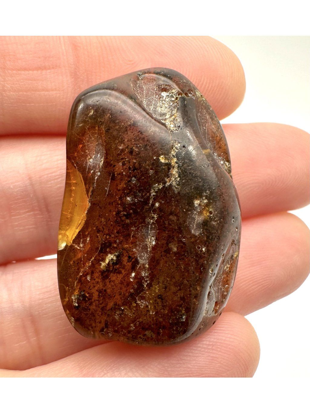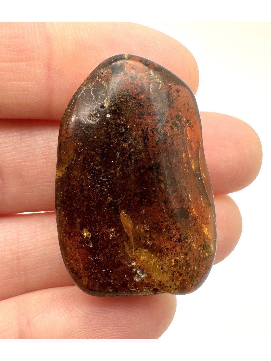 Polnischer Bernstein ist auch für seine besonders gut erhaltenen Einschlüsse bekannt. Zu den häufigsten gehören kleine fossile Insekten aus der Urzeit – etwa Fliegen, Mücken, Wespen, Käfer, Termiten oder Ameisen. Diese Exemplare zeigen oft feinste Details von Körper und Flügeln. Seltener, aber sehr interessant sind pflanzliche Einschlüsse wie Nadelbaumnadeln, Pollenkörner, Blattfragmente, Moose oder Flechten. Diese Überreste stammen aus prähistorischen Wäldern, die einst Nordeuropa bedeckten. Ebenfalls selten, aber beeindruckend, sind Spinnen, Hundertfüßer, Milben oder Larven.
