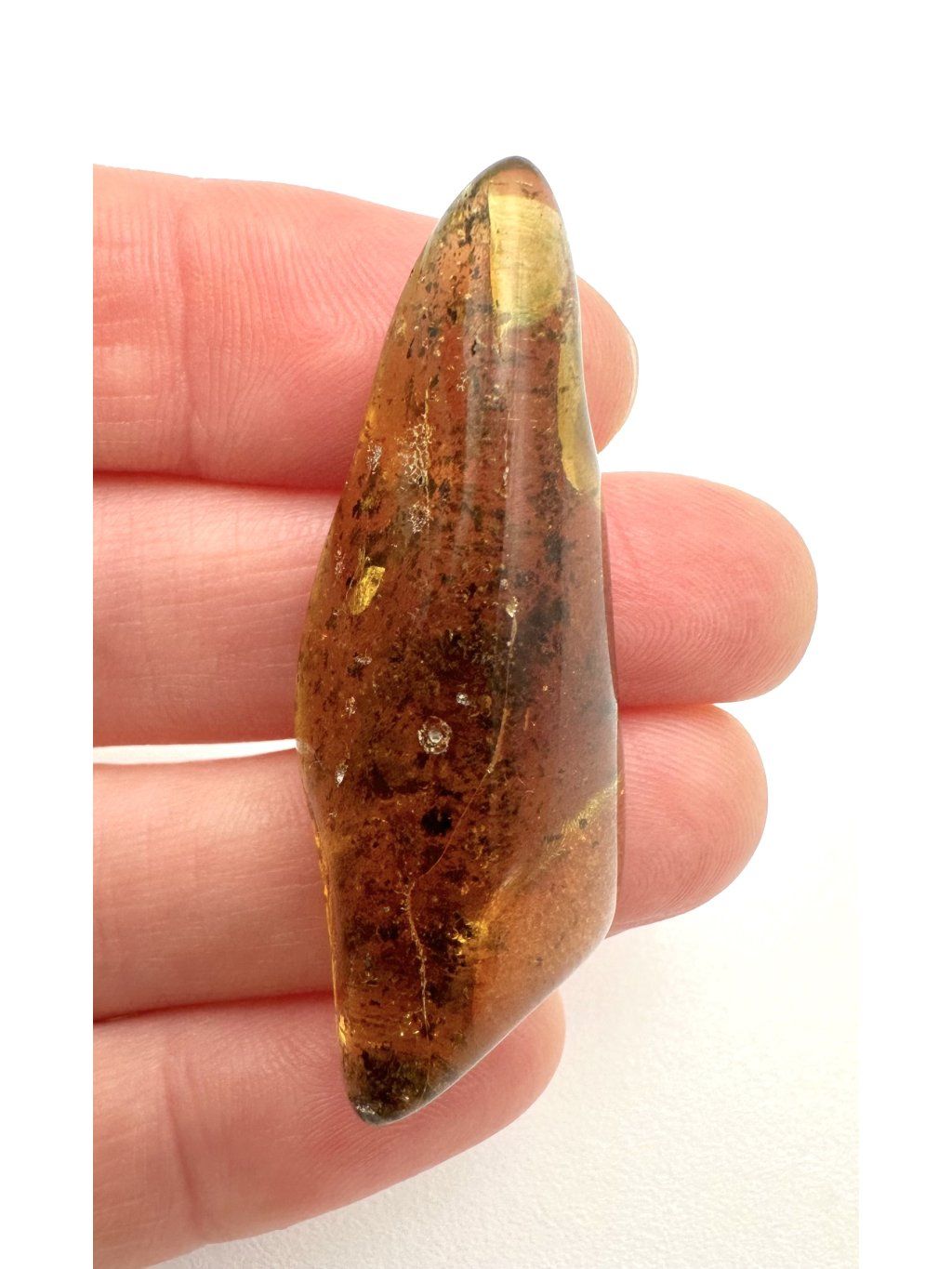 Polnischer Bernstein ist auch für seine besonders gut erhaltenen Einschlüsse bekannt. Zu den häufigsten gehören kleine fossile Insekten aus der Urzeit – etwa Fliegen, Mücken, Wespen, Käfer, Termiten oder Ameisen. Diese Exemplare zeigen oft feinste Details von Körper und Flügeln. Seltener, aber sehr interessant sind pflanzliche Einschlüsse wie Nadelbaumnadeln, Pollenkörner, Blattfragmente, Moose oder Flechten. Diese Überreste stammen aus prähistorischen Wäldern, die einst Nordeuropa bedeckten. Ebenfalls selten, aber beeindruckend, sind Spinnen, Hundertfüßer, Milben oder Larven.