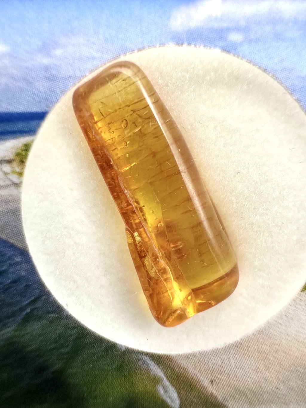 Litauischer Bernstein ist durch seine markante Farbe bekannt, die häufig von hell- bis dunkelgelb reicht und in honigfarbene oder orangefarbene Töne übergeht. Es gibt auch dunklere Varianten – von braun bis nahezu schwarz – sowie seltenere Ausführungen in fast weiß oder grünlich. Aufgrund seines hohen Gehalts an Bernsteinsäure (bis zu etwa 8 %) gilt Baltischer Bernstein im Vergleich zu anderen Typen als hochwertiger. Er enthält oft natürliche Einschlüsse wie Luftblasen, Pflanzenreste oder kleine Insekten, was seinen Sammlerwert und ästhetischen Reiz deutlich steigert.