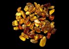 Insekten in Bernstein in einer Schachtel mit Vergrößerungsglas – Litauen