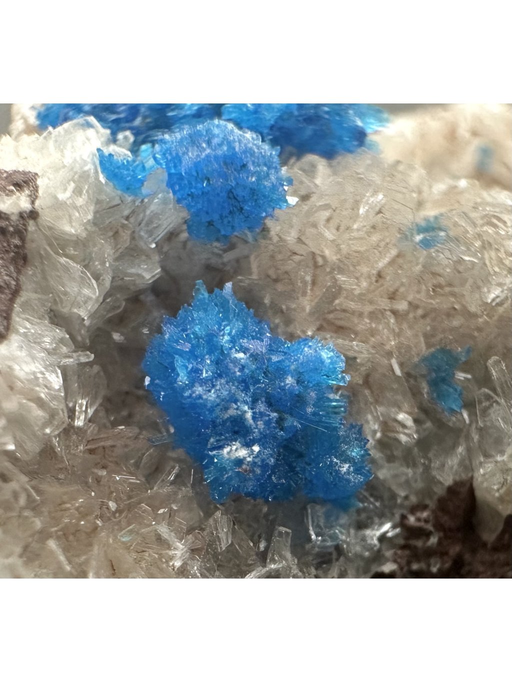 Cavansit ist ein seltenes Mineral aus der Gruppe der Phosphate mit der chemischen Formel Ca(VO)(Si₄O₁₀)-4(H₂O). Es ist nach seinen Hauptbestandteilen benannt: Kalzium (Ca), Vanadium (V) und Silizium (Si). Dieses Mineral ist für seine intensive blaue bis türkisfarbene Farbe bekannt, die es zu einem der attraktivsten Sammlerstücke macht. Das Mineral bildet Kristalle in kleinen, nadelförmigen oder tafelförmigen Aggregaten, die sich oft zu rosetten- oder sternförmigen Gebilden zusammenlagern. Diese Kristallgruppen sehen sehr dekorativ aus.