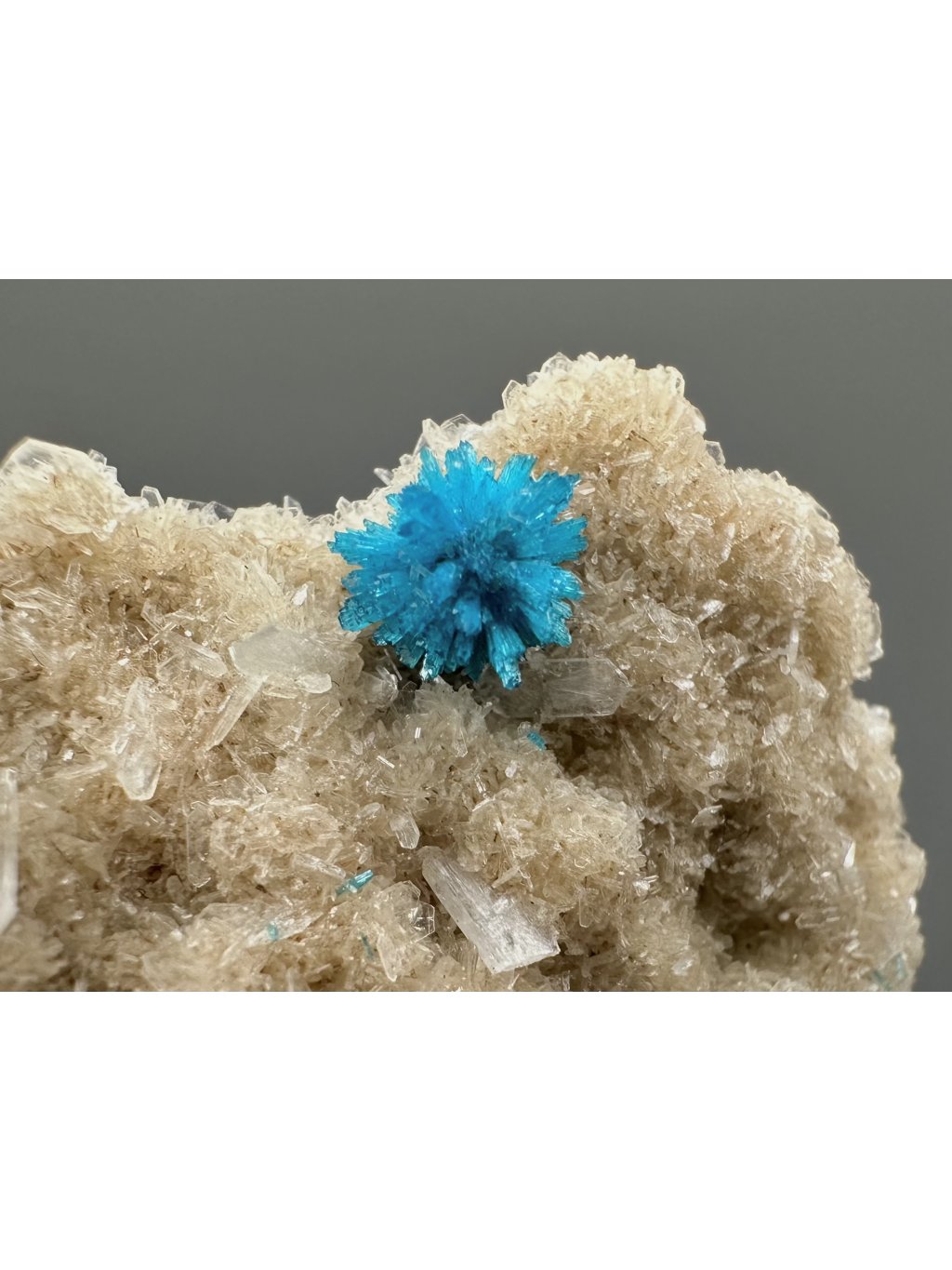 Cavansit ist ein seltenes Mineral aus der Gruppe der Phosphate mit der chemischen Formel Ca(VO)(Si₄O₁₀)-4(H₂O). Es ist nach seinen Hauptbestandteilen benannt: Kalzium (Ca), Vanadium (V) und Silizium (Si). Dieses Mineral ist für seine intensive blaue bis türkisfarbene Farbe bekannt, die es zu einem der attraktivsten Sammlerstücke macht. Das Mineral bildet Kristalle in kleinen, nadelförmigen oder tafelförmigen Aggregaten, die sich oft zu rosetten- oder sternförmigen Gebilden zusammenlagern. Diese Kristallgruppen sehen sehr dekorativ aus.