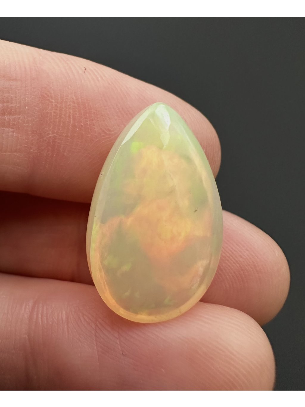 Äthiopische Kabochen können mit einer breiten Farbpalette aufwarten – von hellen, milchig-weißen Tönen über Gelb und Orange bis hin zu intensiven roten und grünen Reflexen. Viele Steine zeigen sogar seltene blaue oder violette Farbspiele. Dank des Kabochen-Schliffs fließen die Farben sanft über die gewölbte Oberfläche.