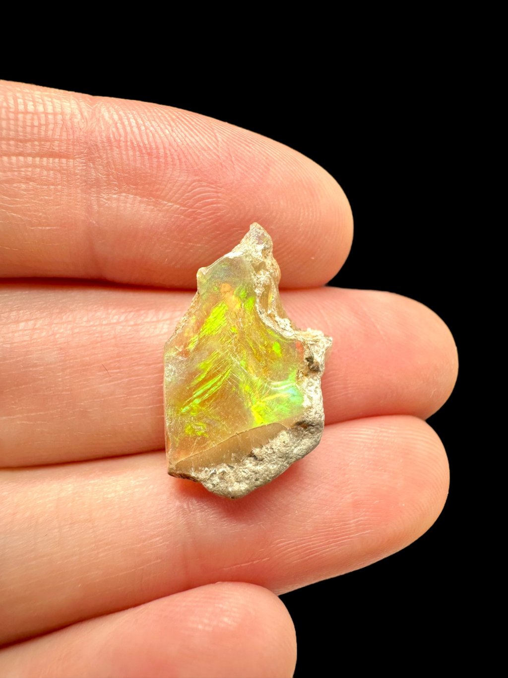 Edelopale aus der Region Welo in Äthiopien gelten als einige der schönsten und hochwertigsten Opale weltweit. Sie zeichnen sich durch ihr einzigartiges Farbspiel und eine hohe Transparenz aus, was sie bei Juwelieren und Sammlern sehr beliebt macht. Die meisten Welo-Opale sind hydrophan, das heißt, sie können Wasser aufnehmen. Dadurch werden sie durchsichtiger und farbintensiver, sind jedoch auch empfindlich gegenüber Feuchtigkeitsschwankungen.