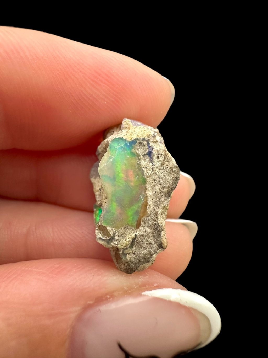 Edelopale aus der Region Welo in Äthiopien gelten als einige der schönsten und hochwertigsten Opale weltweit. Sie zeichnen sich durch ihr einzigartiges Farbspiel und eine hohe Transparenz aus, was sie bei Juwelieren und Sammlern sehr beliebt macht. Die meisten Welo-Opale sind hydrophan, das heißt, sie können Wasser aufnehmen. Dadurch werden sie durchsichtiger und farbintensiver, sind jedoch auch empfindlich gegenüber Feuchtigkeitsschwankungen.