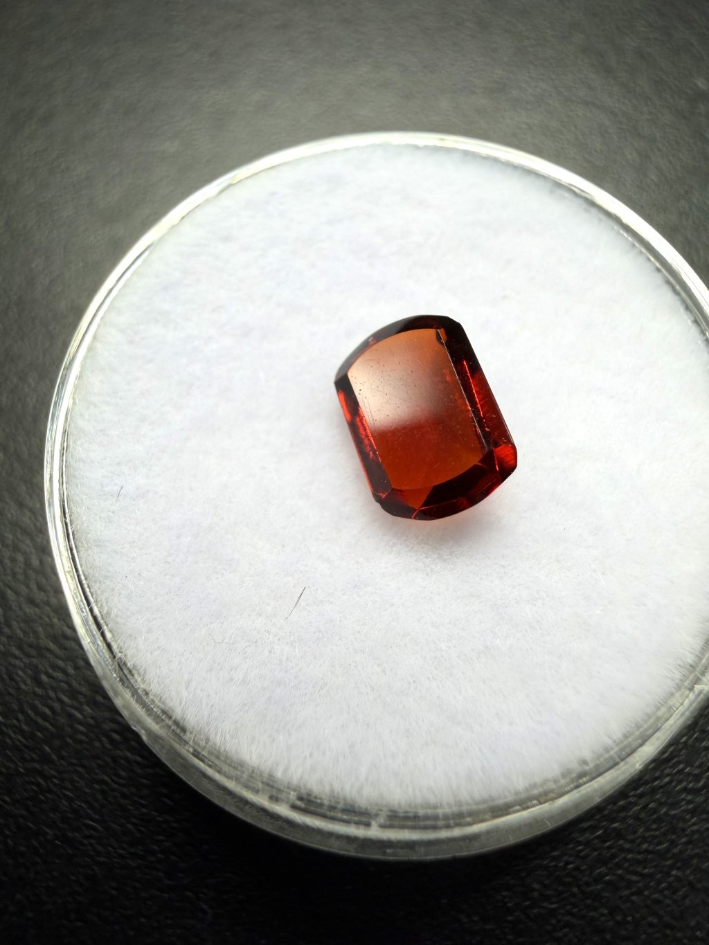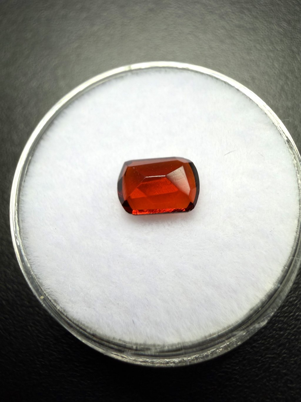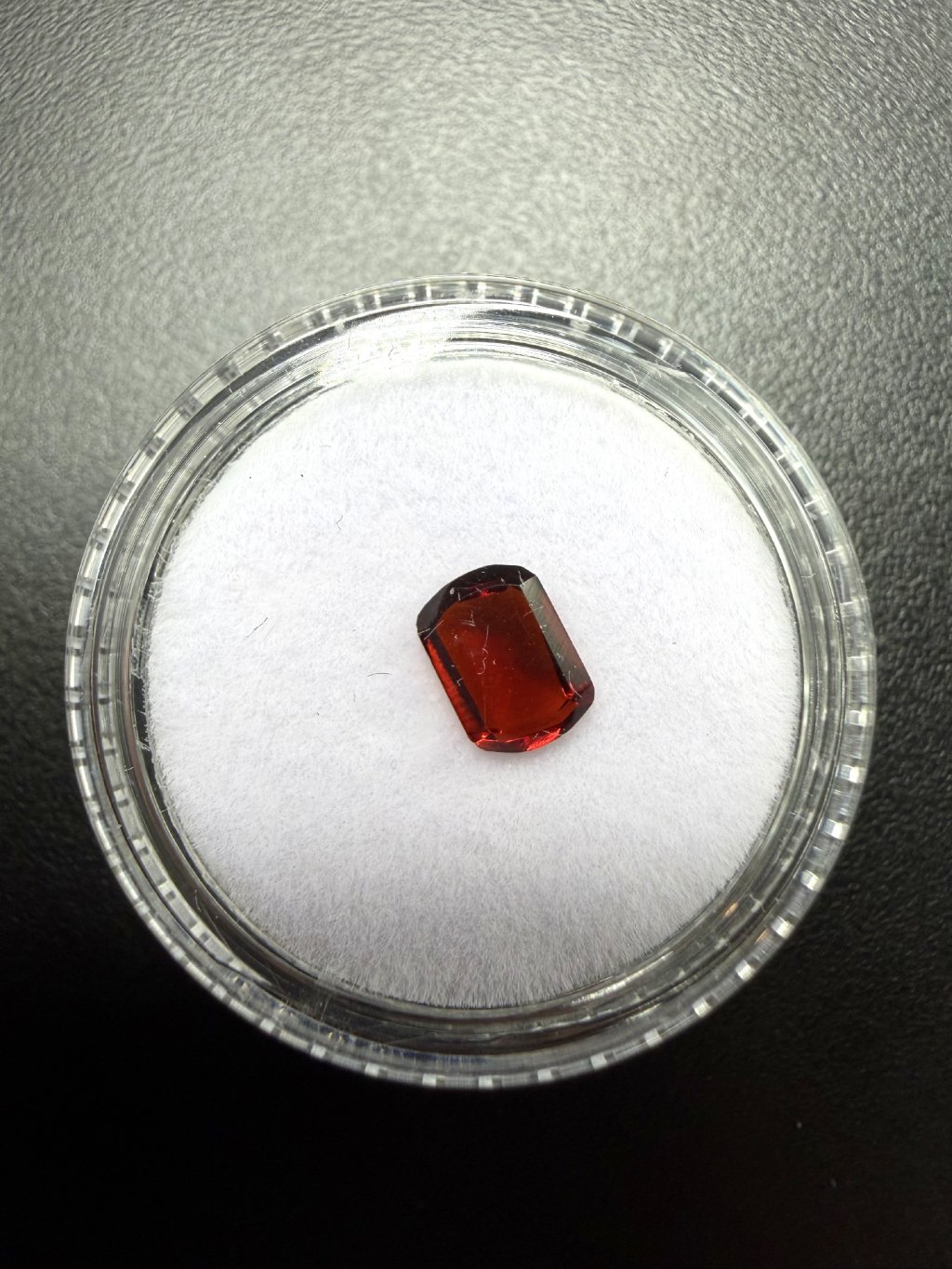 Hinweis: Der Schliff ist von minderer Qualität. Es handelt sich eher um ein günstigeres Musterstück eines geschliffenen Granats.