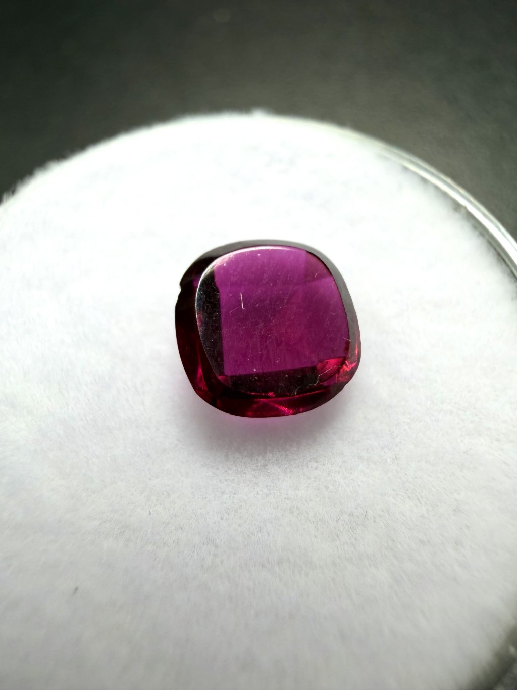 Hinweis: Der Schliff ist von minderer Qualität. Es handelt sich eher um ein günstigeres Musterstück eines geschliffenen Granats.